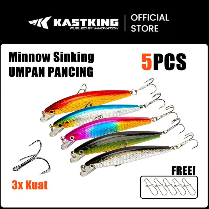 OFFICIAL KastKing 5PCS 7g/8cm Minnow Minow Set Box Umpan Pancing,Lure Casting Fishing Lurebait Umpan Pancing Casting Ik