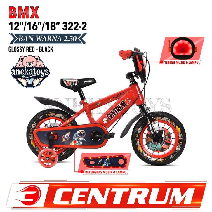 Sepeda BMX Anak Laki Centrum CT322-2 Tebeng n Ketengkas Musik Lampu Ban Warna 12/16/1x2.5 Inch Ban