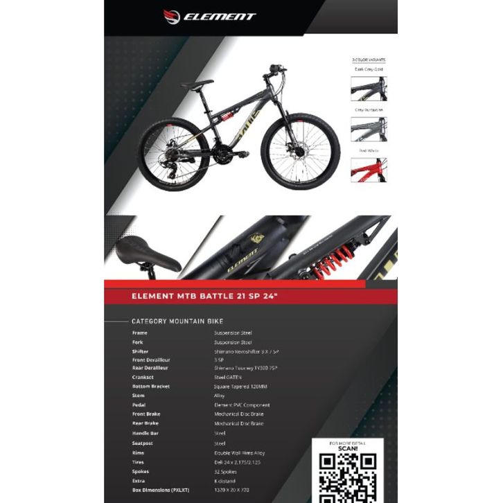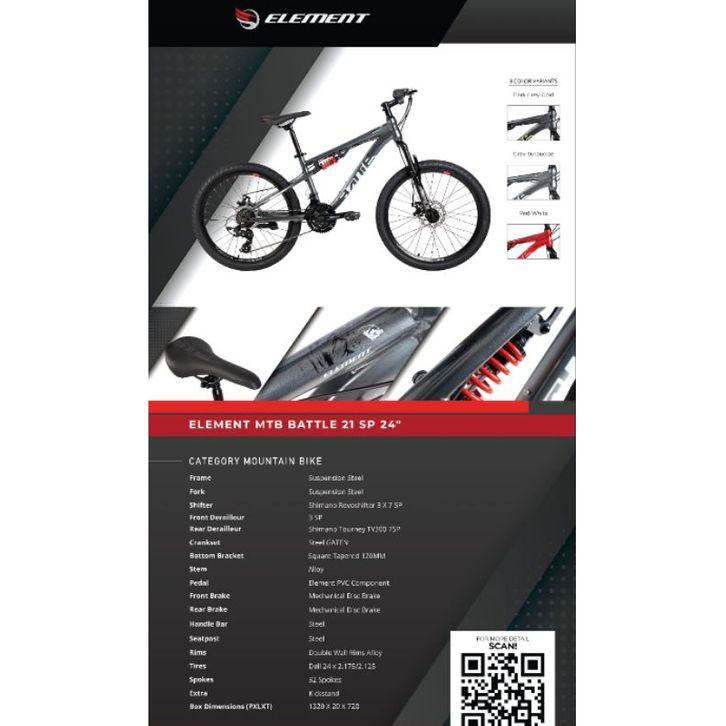 SEPEDA GUNUNG REMAJA MTB 2 24 INCH ELEMENT BATTLE / ELEMENT SEATLE 3x7 SPEED SHIMANO