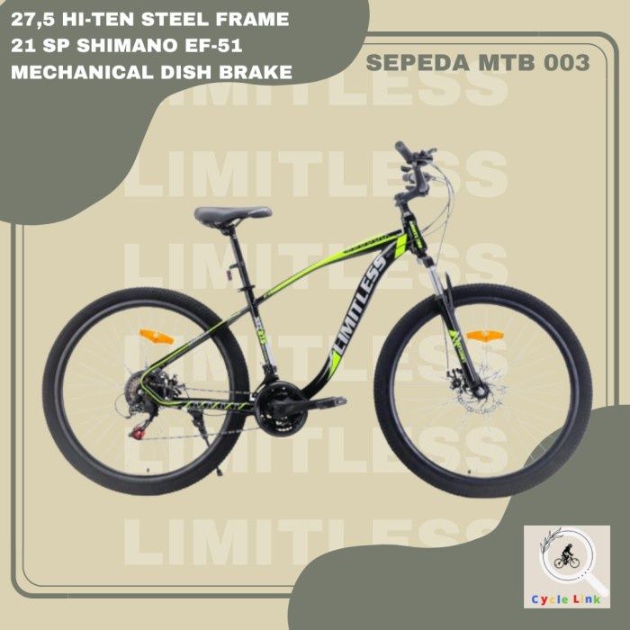 Sepeda Gunung 3 Limitless Dewasa 27,5 27.5 MTB Steel Speed Shimano Besi