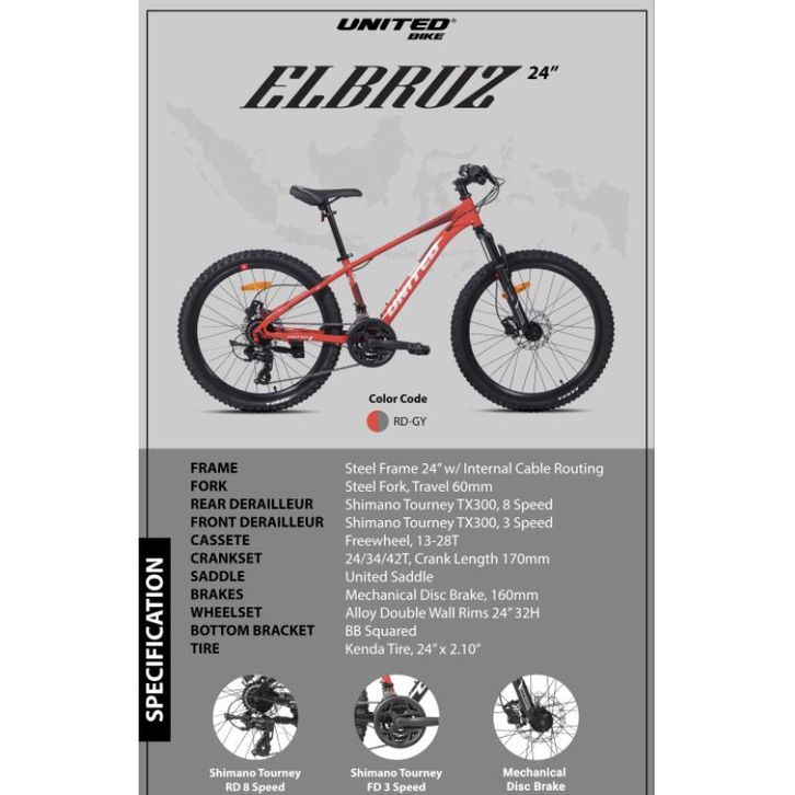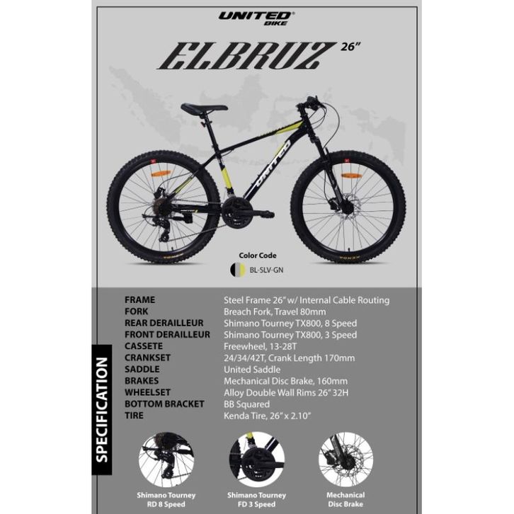 SEPEDA GUNUNG MTB 24 26 INCH UNITED ELBRUZ SHIMANO 3X SPEED
