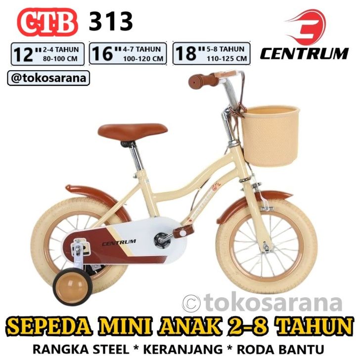 Sepeda Mini Anak Centrum CT313 CTB 2- Tahun 12" 16" 1" Keranjang Roda Bantu Girl Bike Perempuan