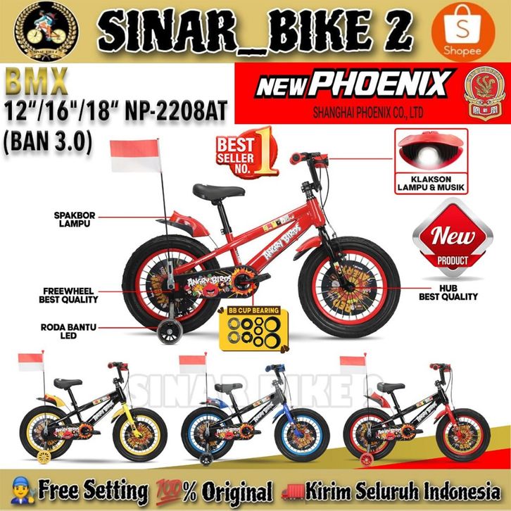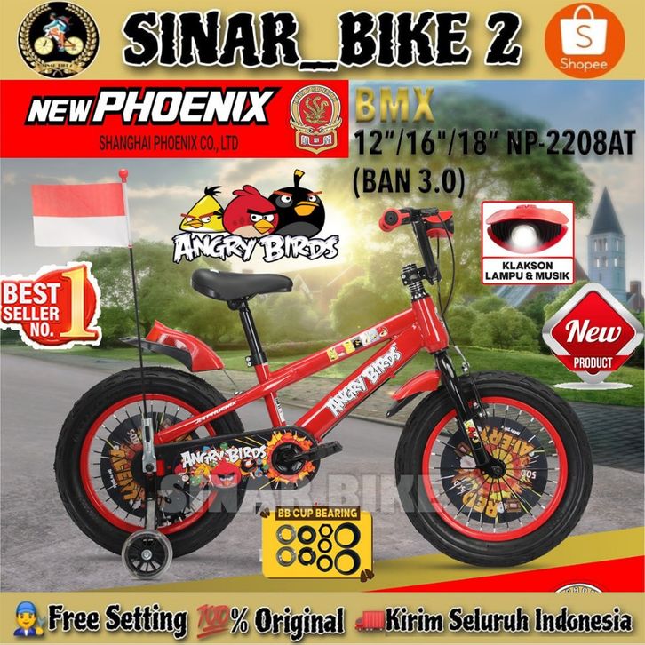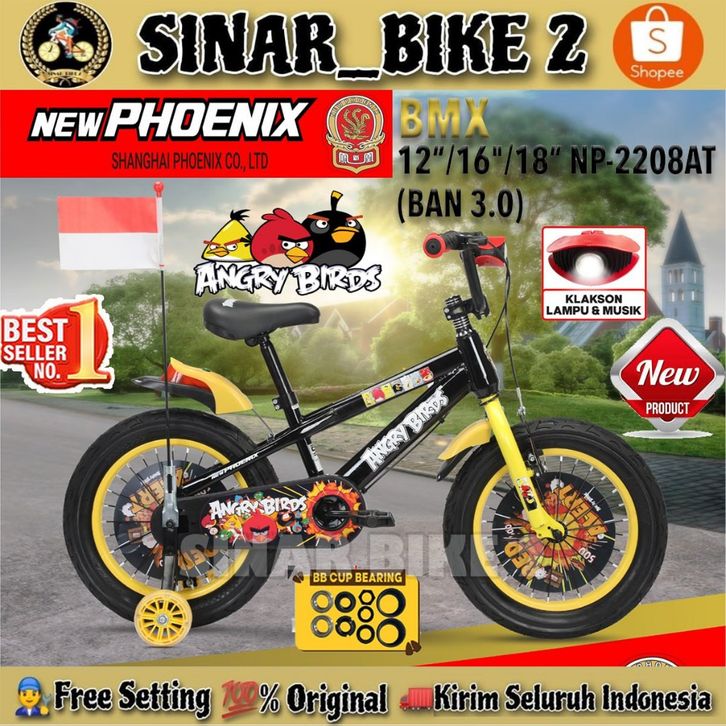 Sepeda Anak Laki BMX NEW PHOENIX NP-22 AT Ukuran 12 16 1 Inch Ban 3. Jumbo Motif Angry Brids