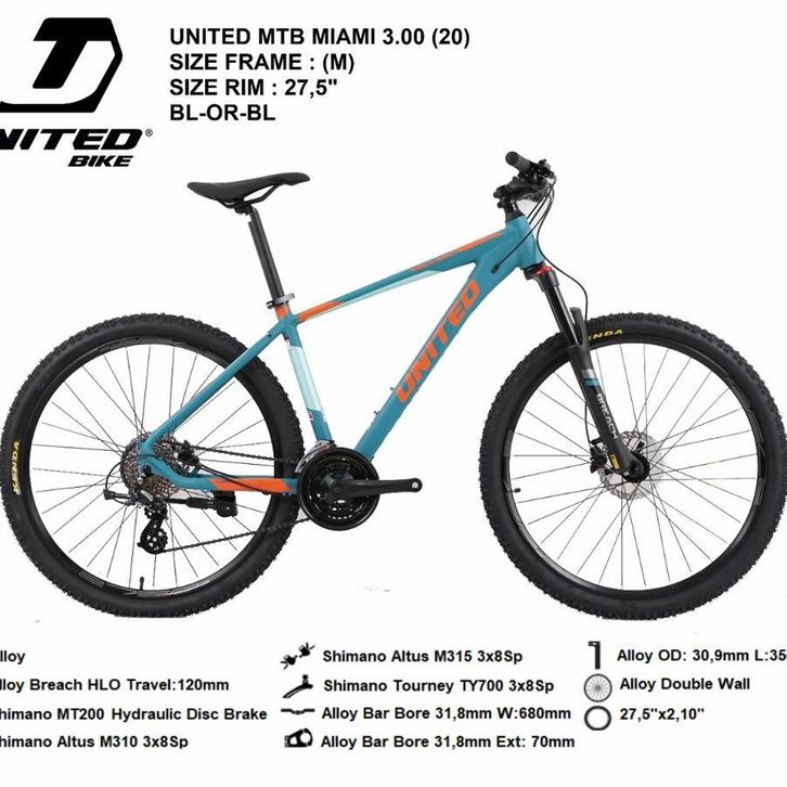 ...Sepeda Gunung UNITED MIAMI 3. 27,5 inch SHIMANO Hydraulic Disc brake MTB united Miami 3. Size