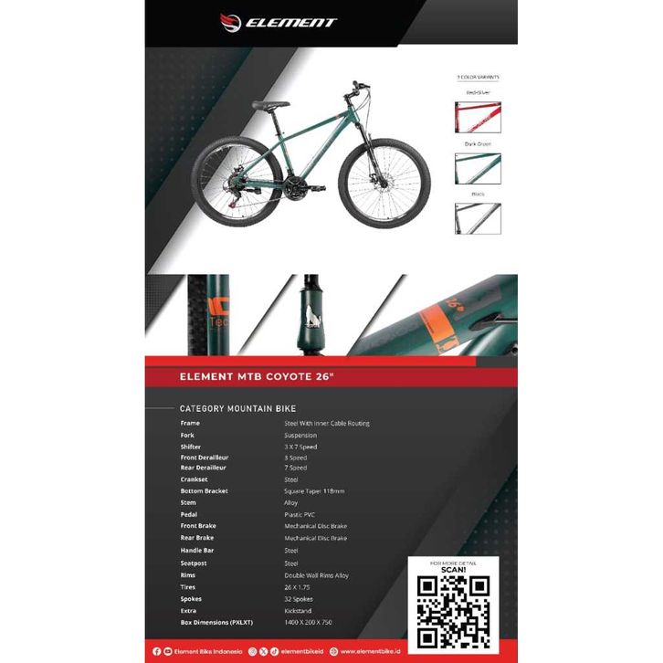 Sepeda Gunung MTB ELEMENT COYOTE Ukuran 26 dan 27.5 Inch Inner Cae Rem Cakram - ASLI ORINAL 1X7