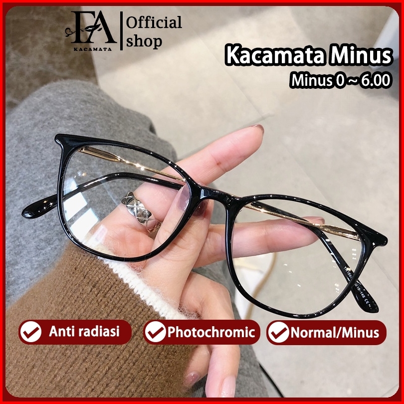 Fomamata Kacamata Minus Photocromic Wanita Anti Radiasi Blueray Uv400 Frame 2 In 1 Astigmatism Bluechromic Round Fashion