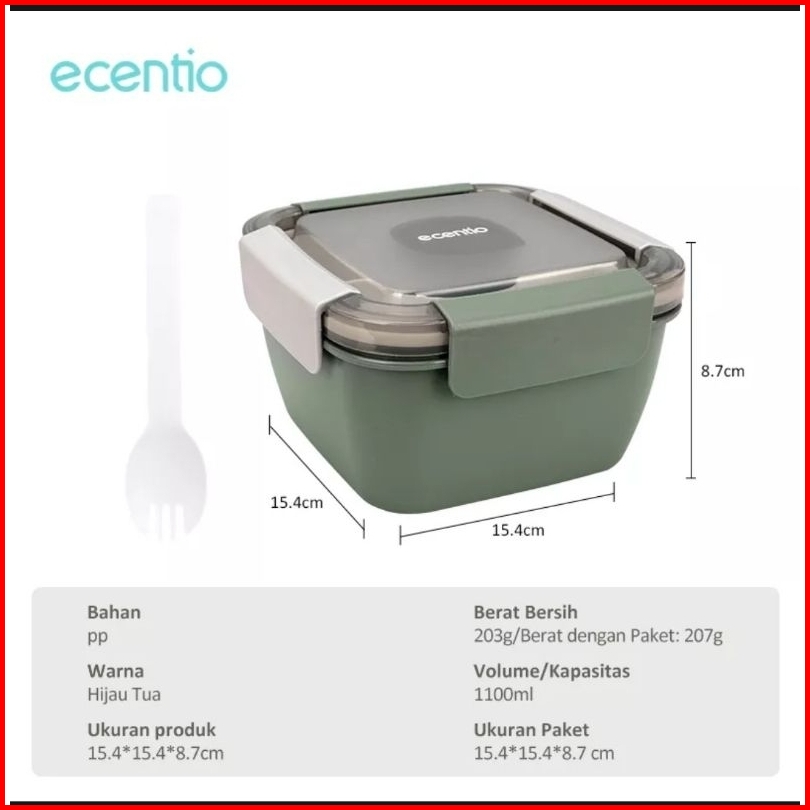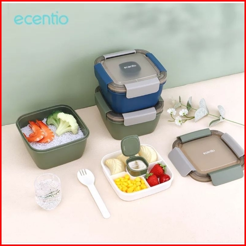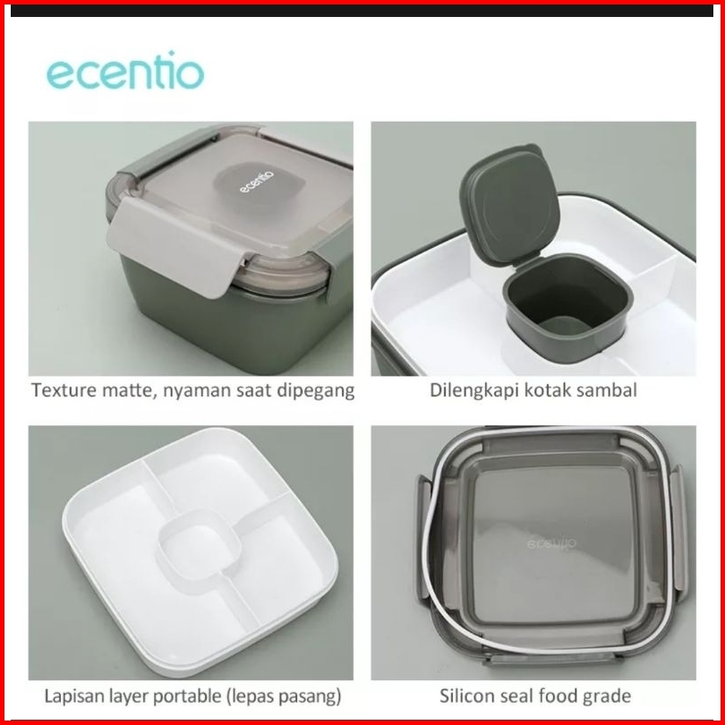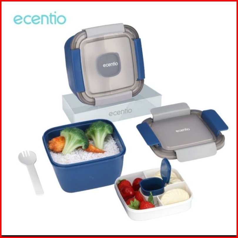 Ecentio Kotak Makan Double Layer 1100 Ml Terdapat Wadah Saus Kecil