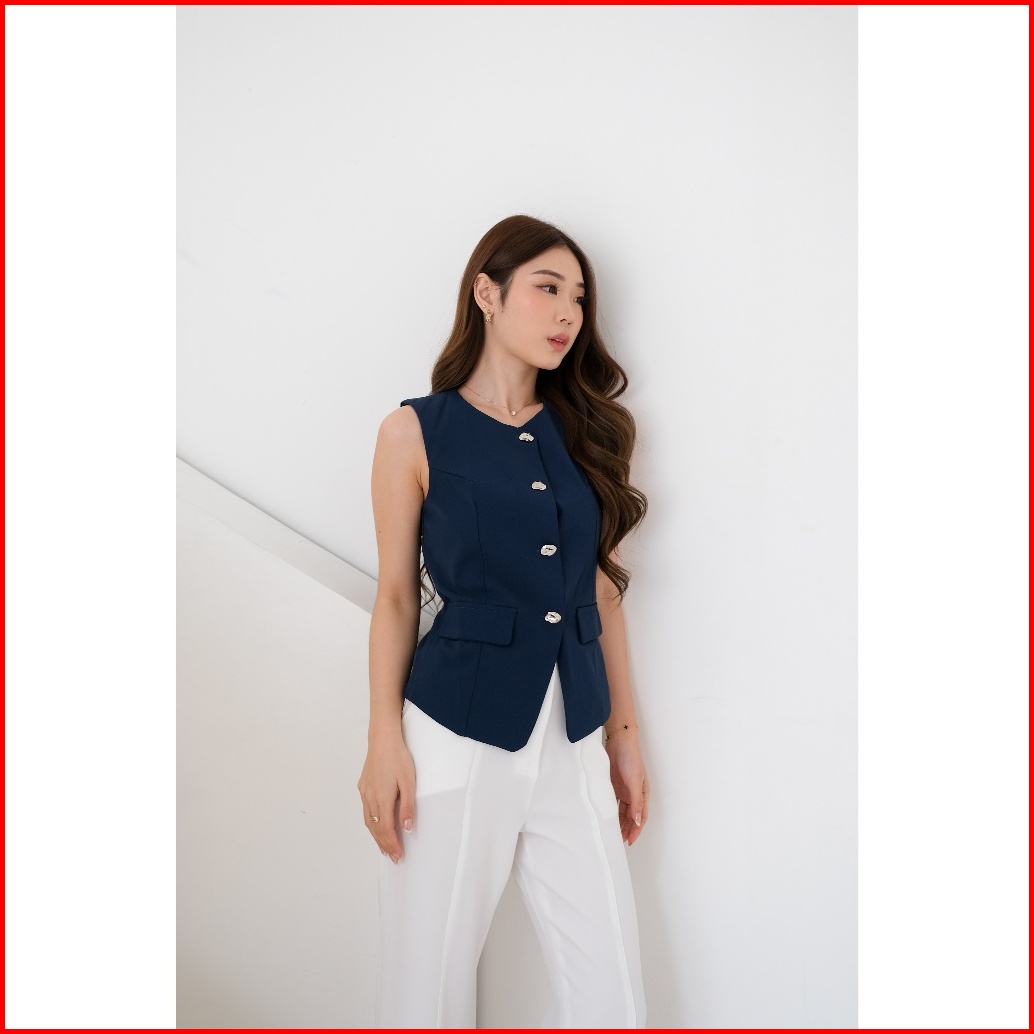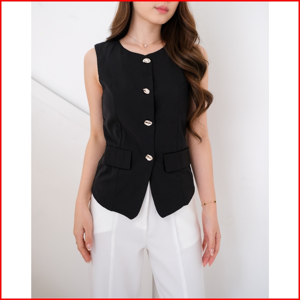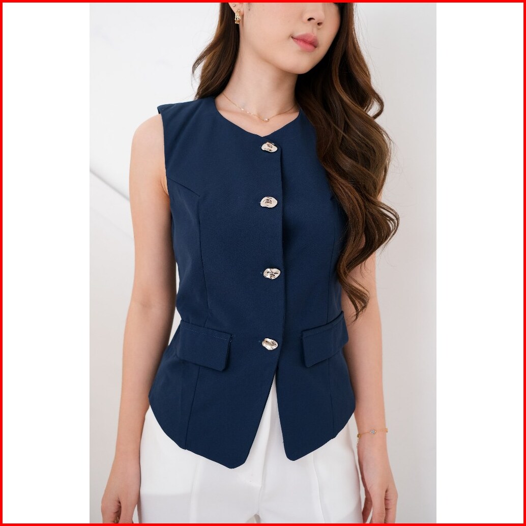 Kiyorawears - Aida Button Vest Atasan Vest Wanita Blouse Casual Atasan Wanita Kekinian Baju Atasan Wanita Terbaru Rompi