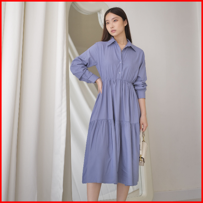 Kiyorawears - Inka Cotton Dress Long Sleeve Dress Midi Dress Wanita Busui Friendly Casual Dress Korean Style