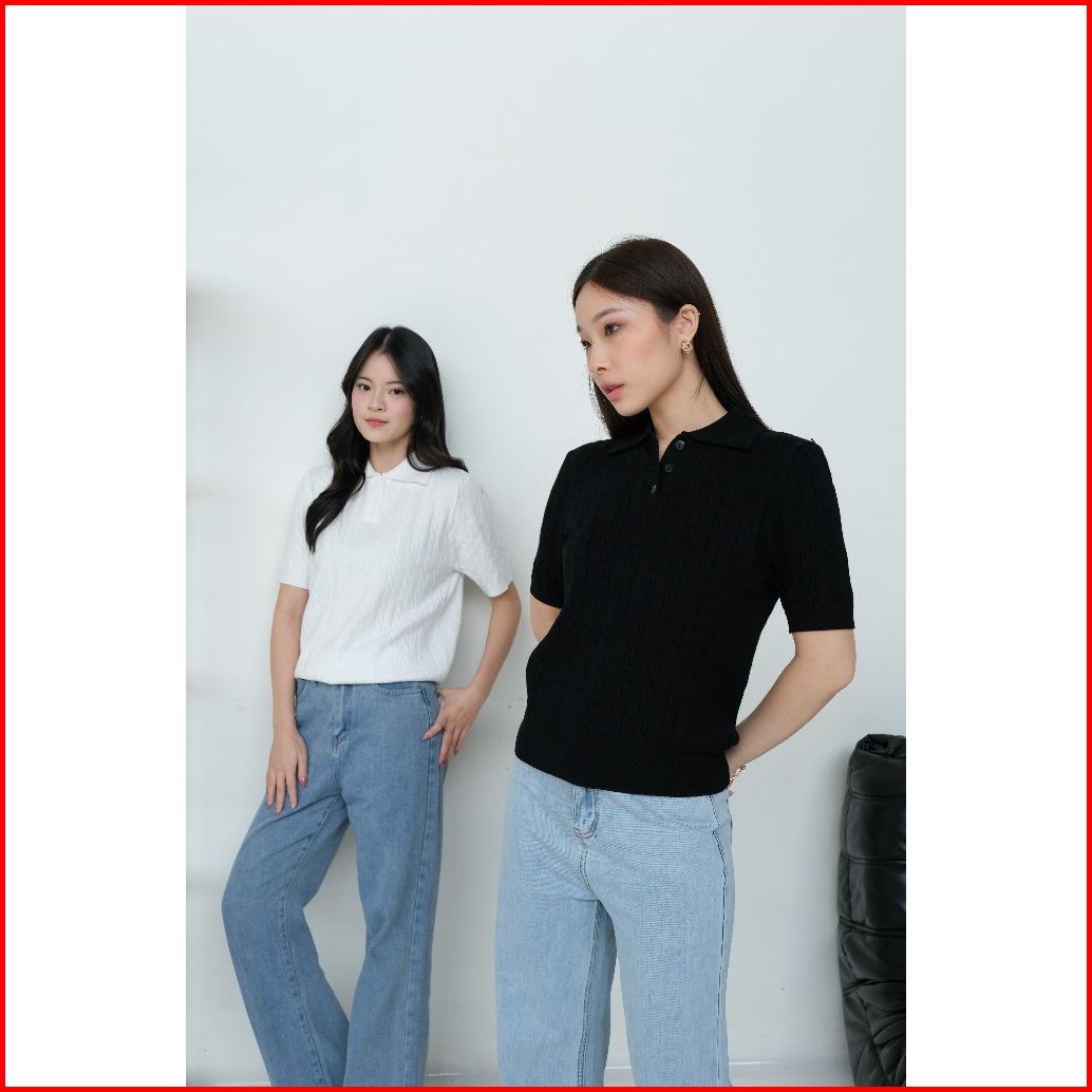 Kiyorawears - Ralph Polo Top Premium Cable Knit Top Blouse Wanita Atasan Rajut Wanita Kekinian Basic Top Baju Atasan Wan