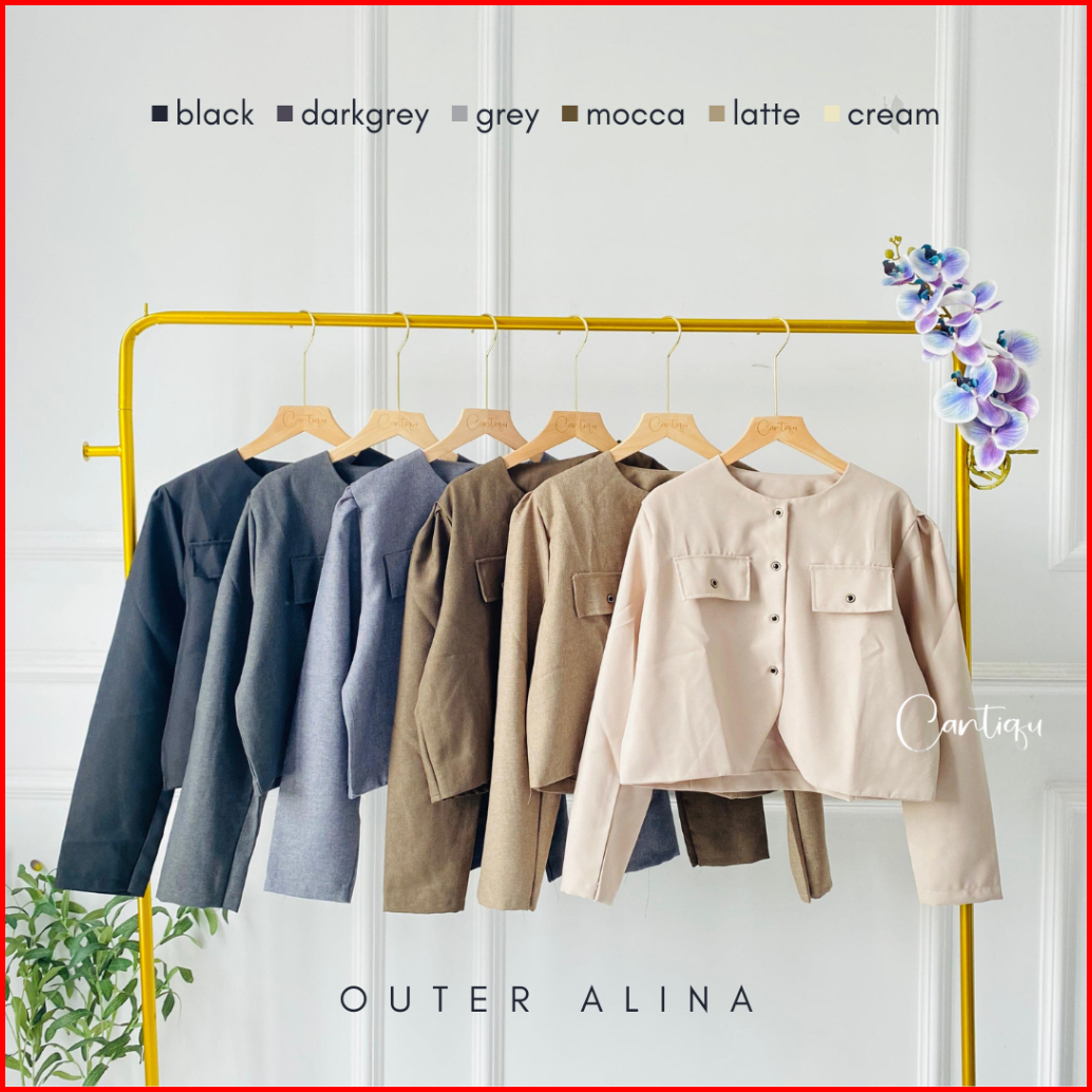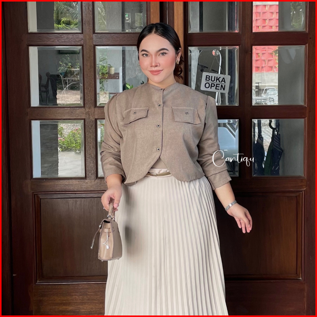 Cantiqu - Alina Outer Button Pakaian Wanita Kemeja Blazer Jumbo Crop Lengan Panjang