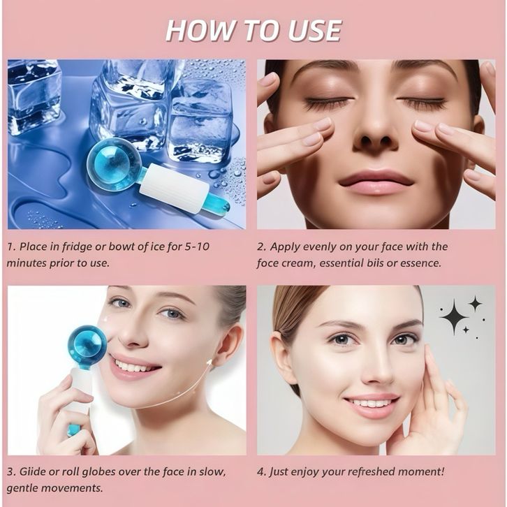 Ice Globes Roller -Pule/Yellow,k/ue 2pcs - Beauty Crystal Ball Glitter/Ice Globes Facial Roller
