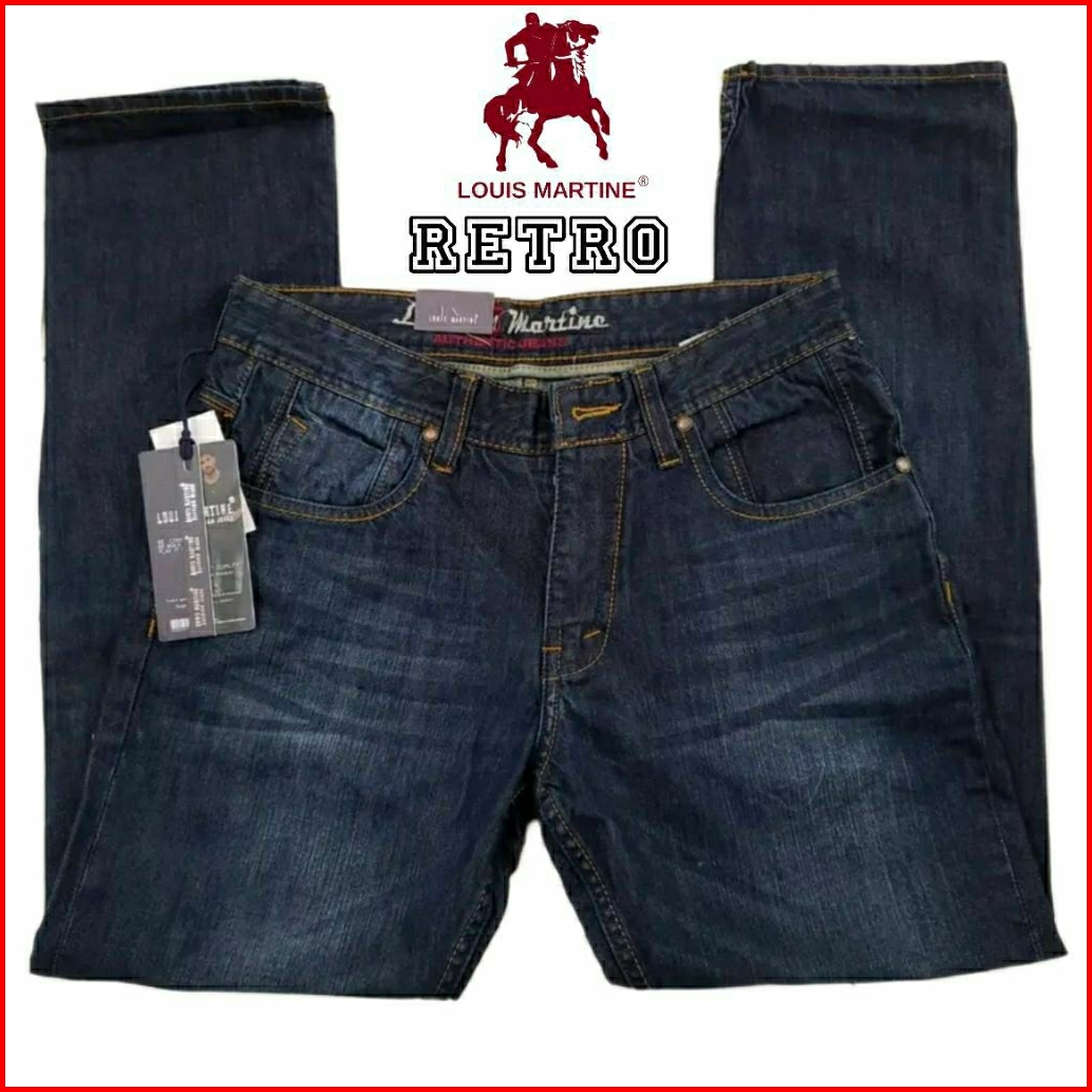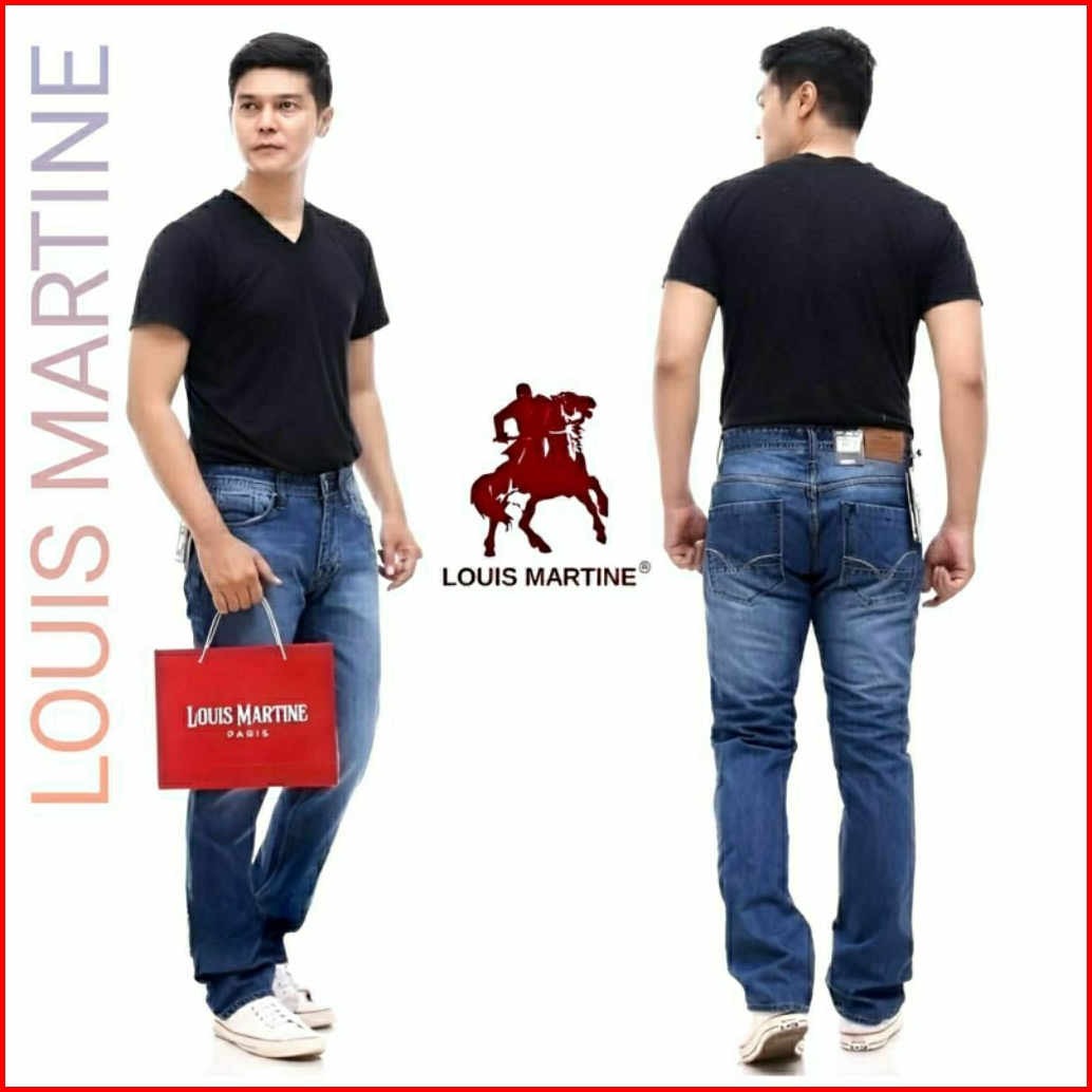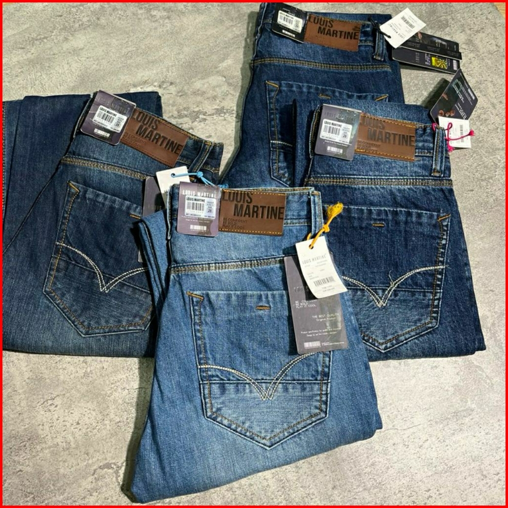 Louis Martine - Celana Jeans Pria Panjang Louis Martine Bahan Denim Corvous Tebal Warna Tidak Mudah Pudar Size 28 - 38