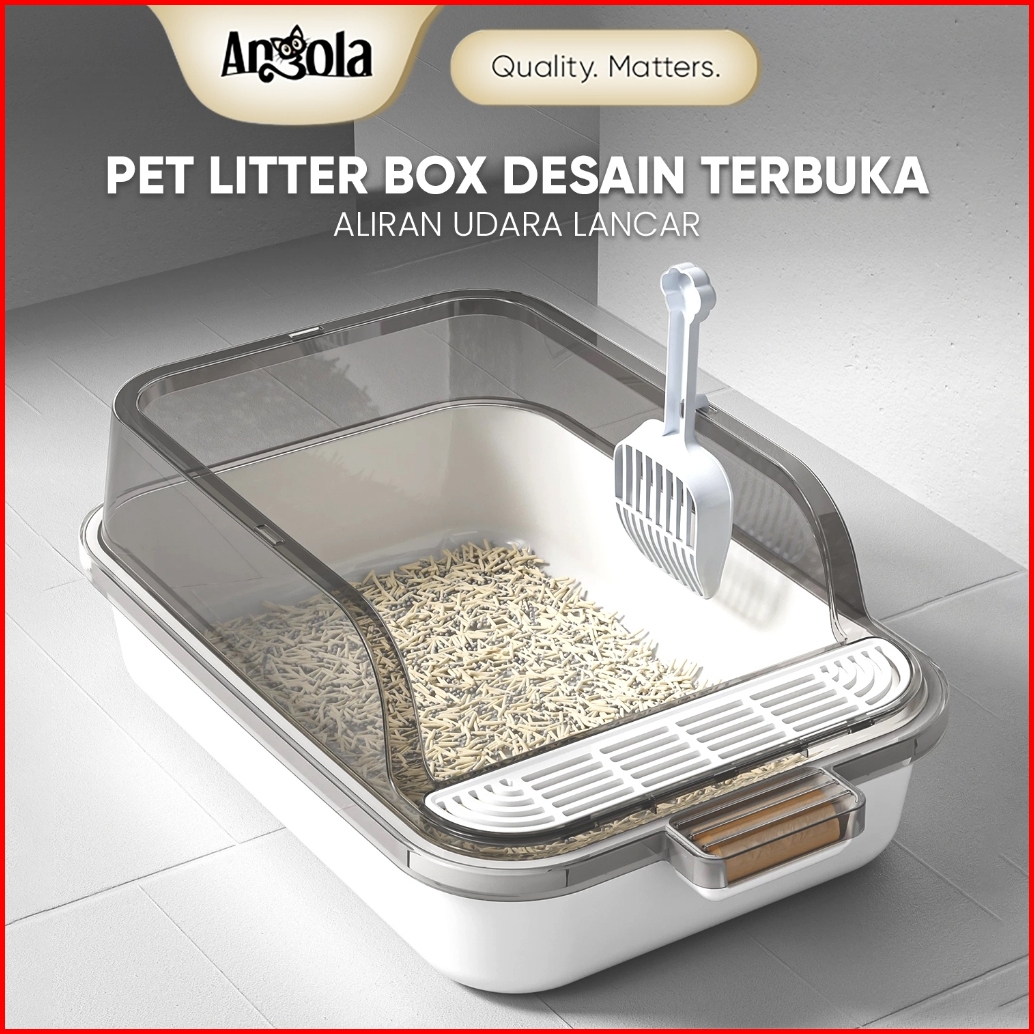 Angola Pet Litter Box Desain Terbuka M22 Bak Toilet Kucing Anjing Besar Free Sekop Plastik Kotoran