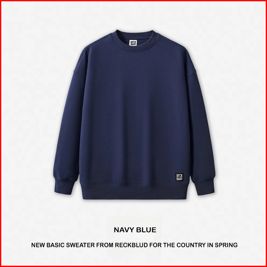 Reckblud - Sweater Crewneck Polos Pria Wanita Cotton Fleece Unisex Original Lokal Navy