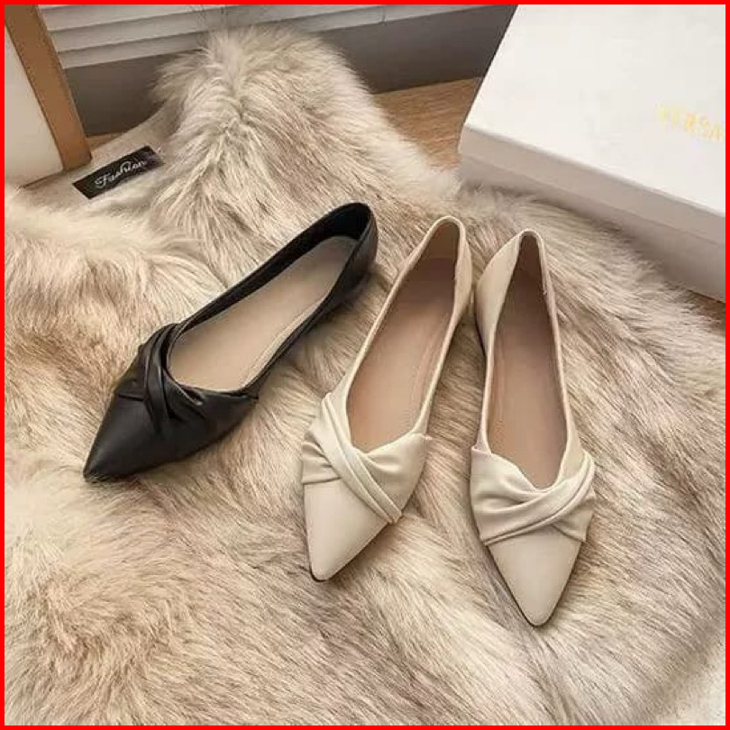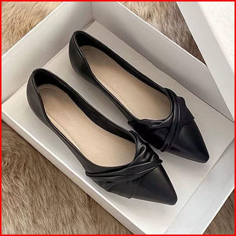 Flat Shoes Simpel Wanita Sintetis Hitam Cream