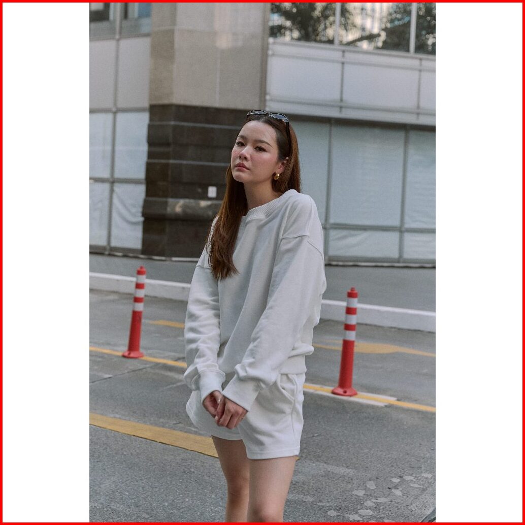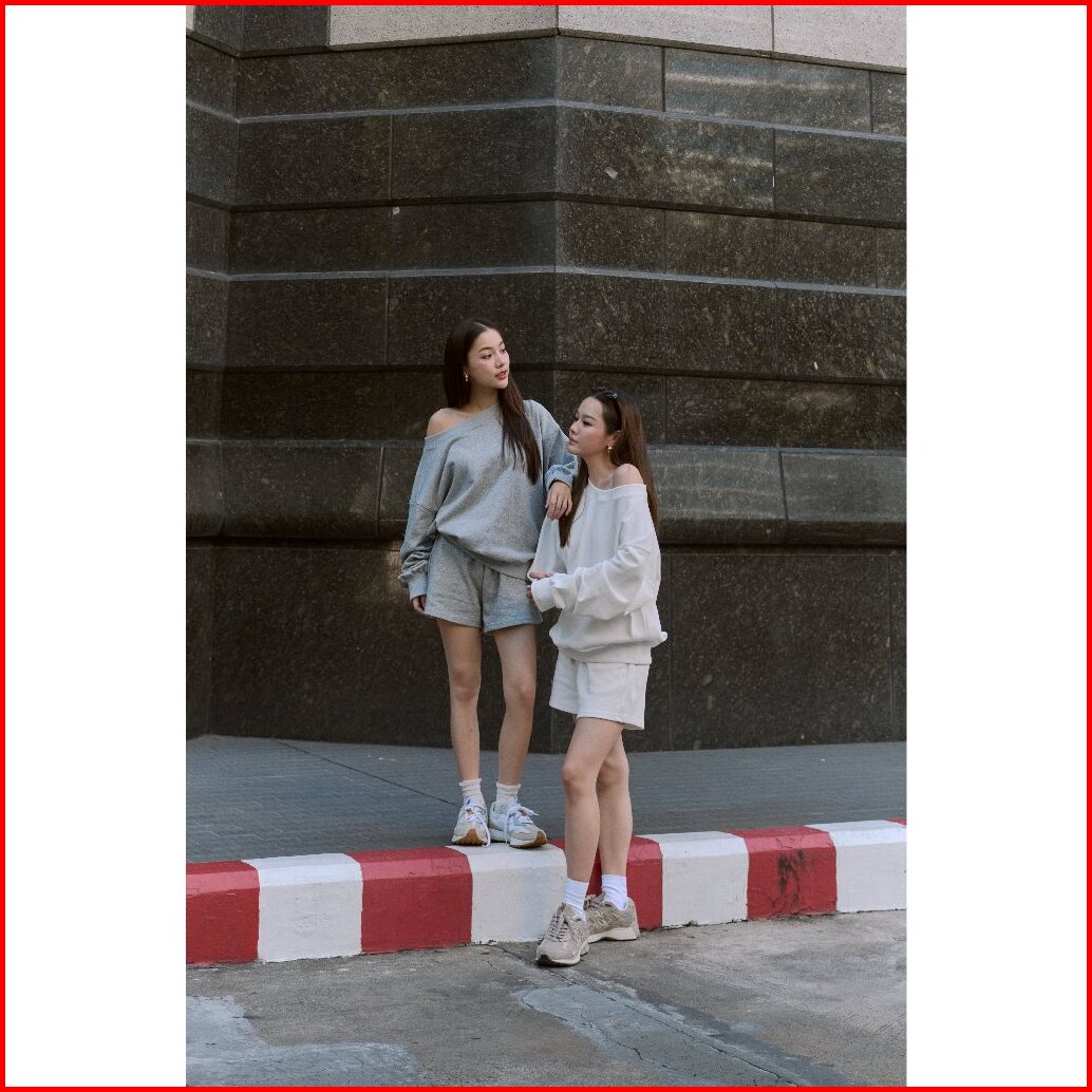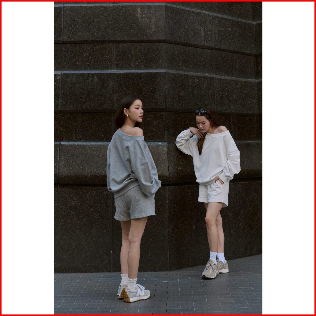 Kiyorawears - U - A Fyra Oversized Shirt Set Setelan Wanita Atasan Off Sholuder Celana Pendek Casual Sweater Basic Setel