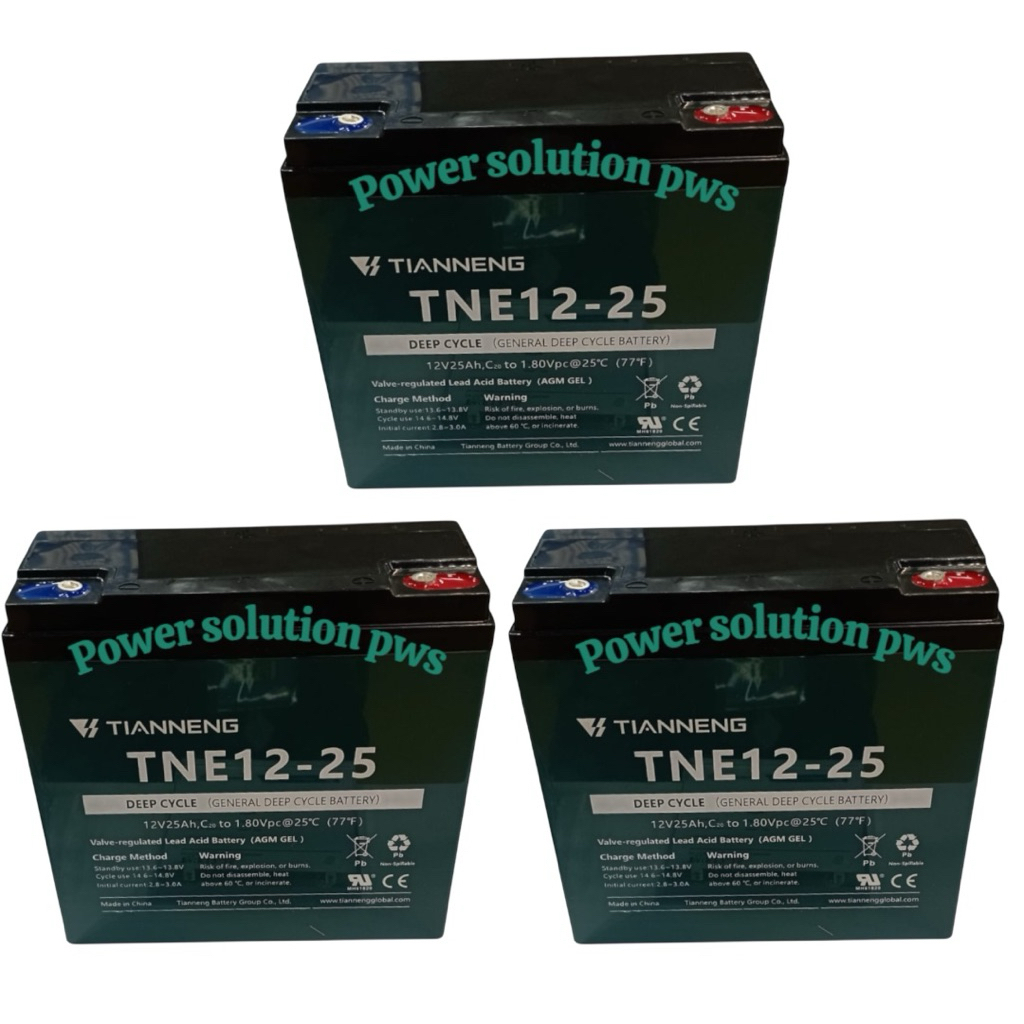 AKI SEPEDA LISTRIK 12V25AH TIANNENG TEN NEX TNE 12-25 12V 25Ah BATERAI MOTOR LISTRIK TIAN NENG Paket isi 3pcs TNE12-25 [ Paket 36V 25Ah - 3x TNE12-25 HIJAU ]
