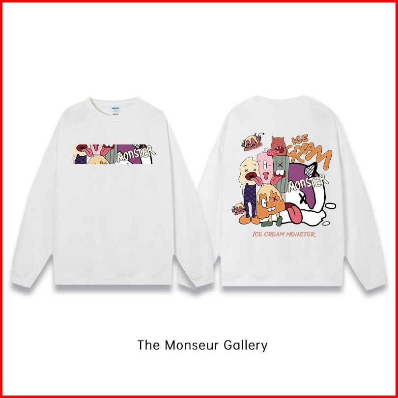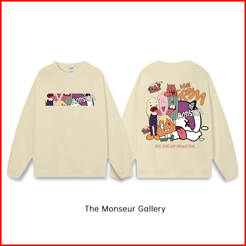 The Monseur Gallery Switer Wanita Oversize Melt Little Monster Style Sweater Oversize Crewneck Sweater Cream