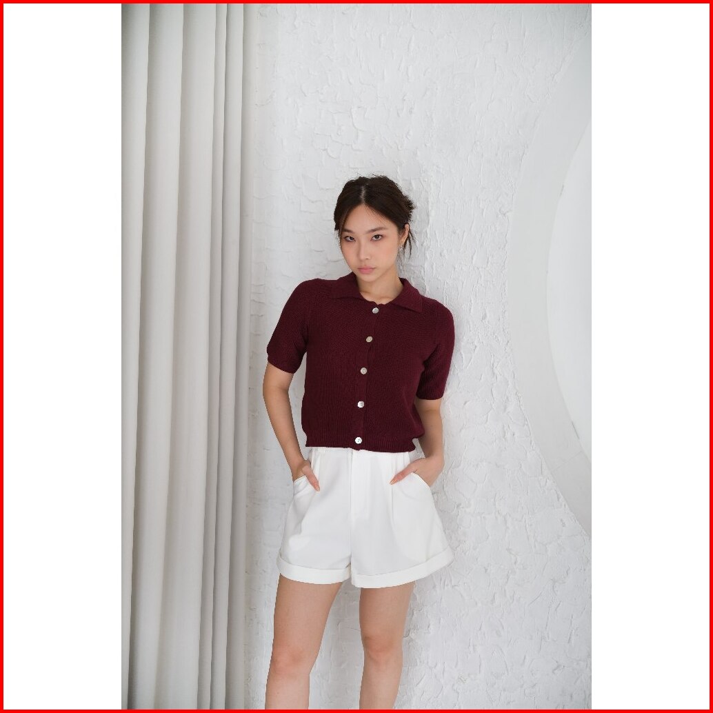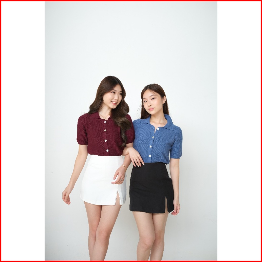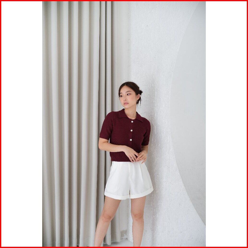 Kiyorawears - Azura Knit Top Button Atasan Polo Button Top Baju Atasan Wanita Kekinian Knit Wanita Blouse Rajut Knit Top