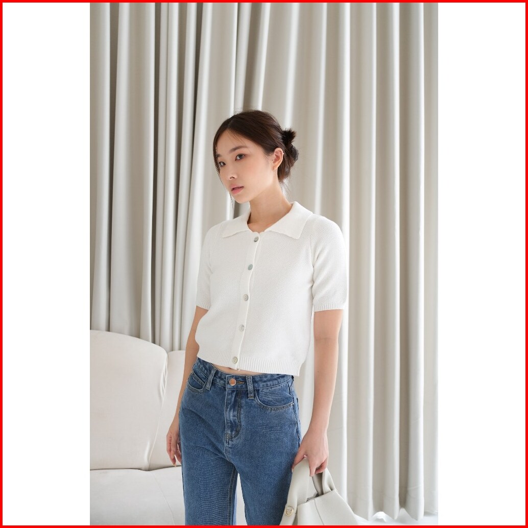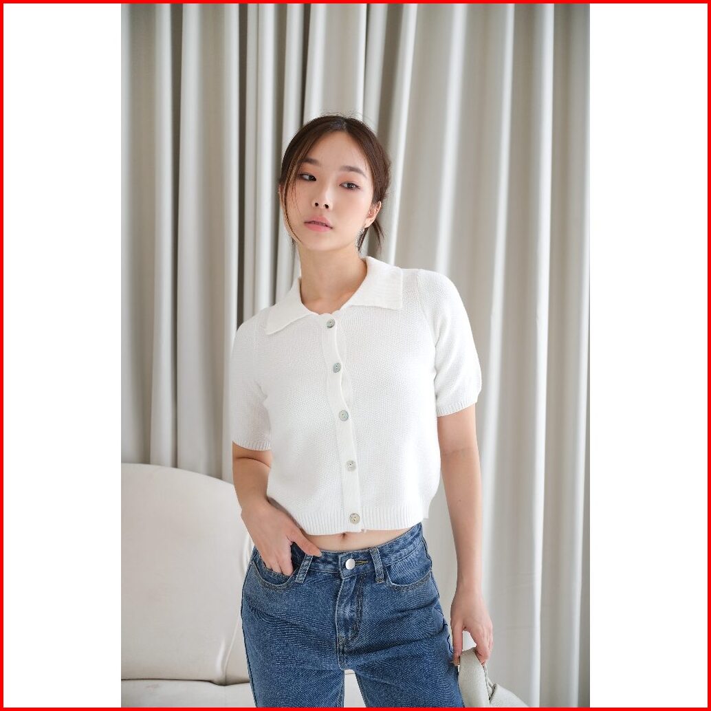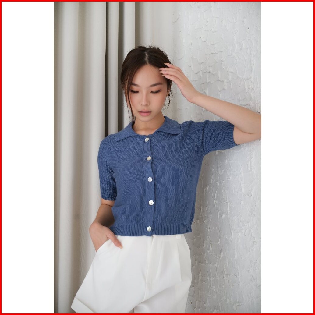 Kiyorawears - Azura Knit Top Button Atasan Polo Button Top Baju Atasan Wanita Kekinian Knit Wanita Blouse Rajut Knit Top