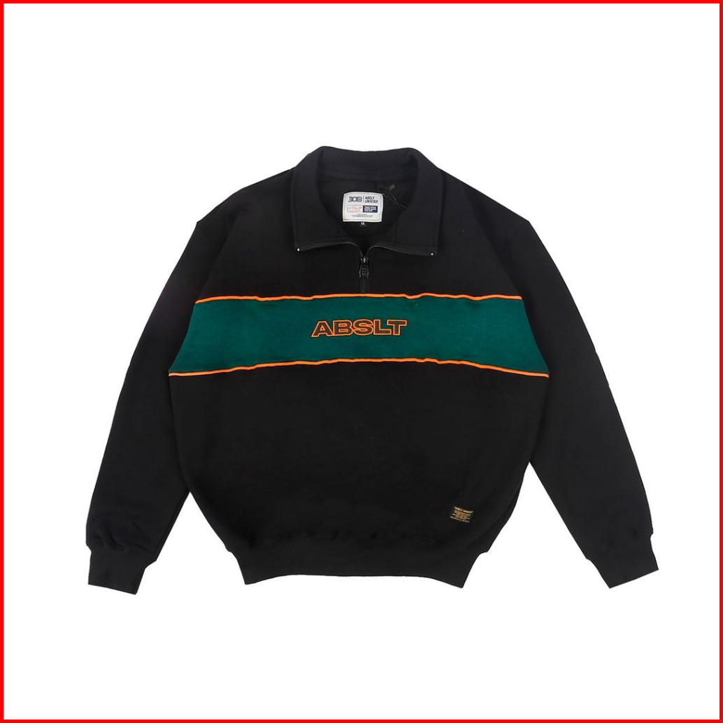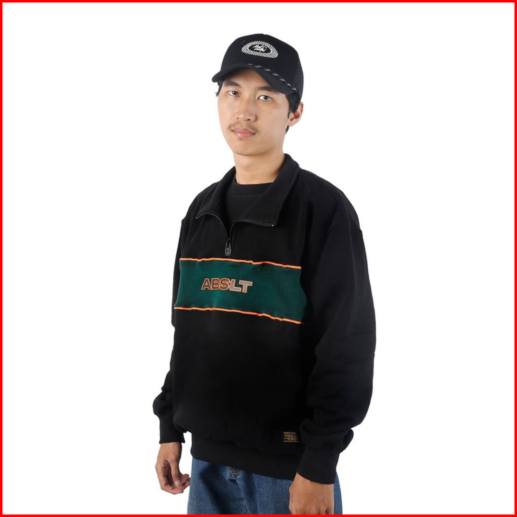 308 Absltunscrd Half Zip Crewneck Combine Forest Green Line Orange