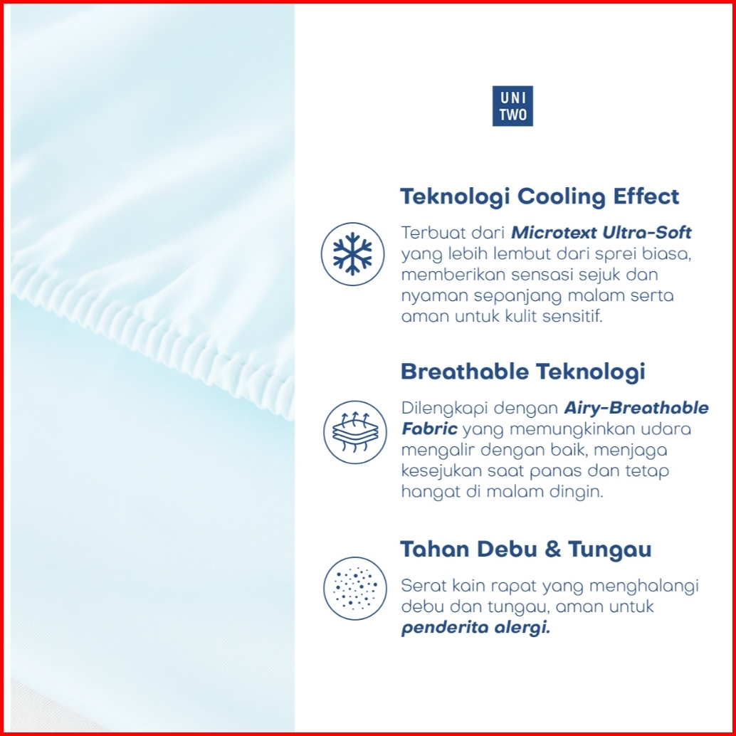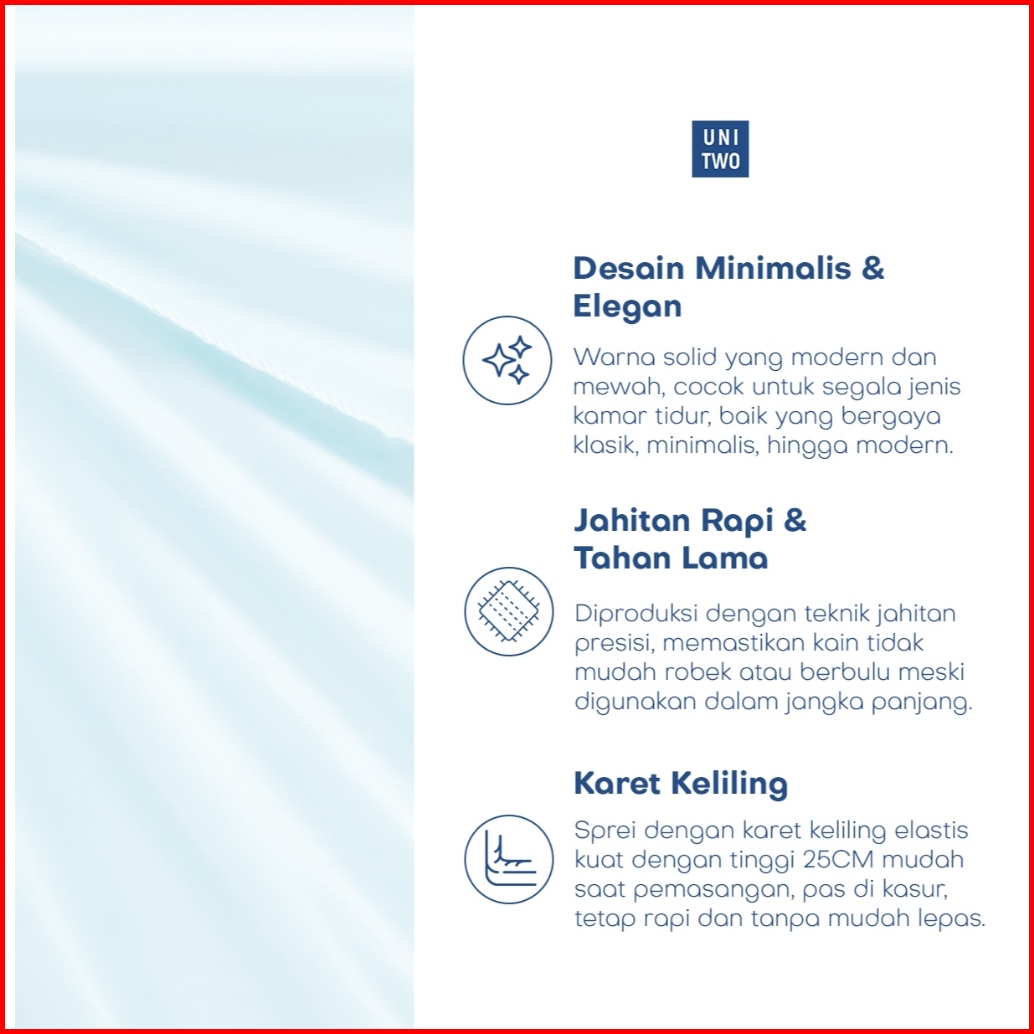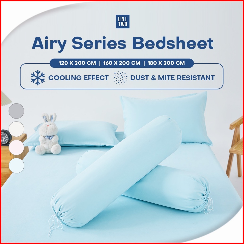 Unitwo Airy Seprei Set Only Sprei Tidur Lembut - Airy Series Motif Polos Ultra Lembut Dengan Cooling Effect Breathable A