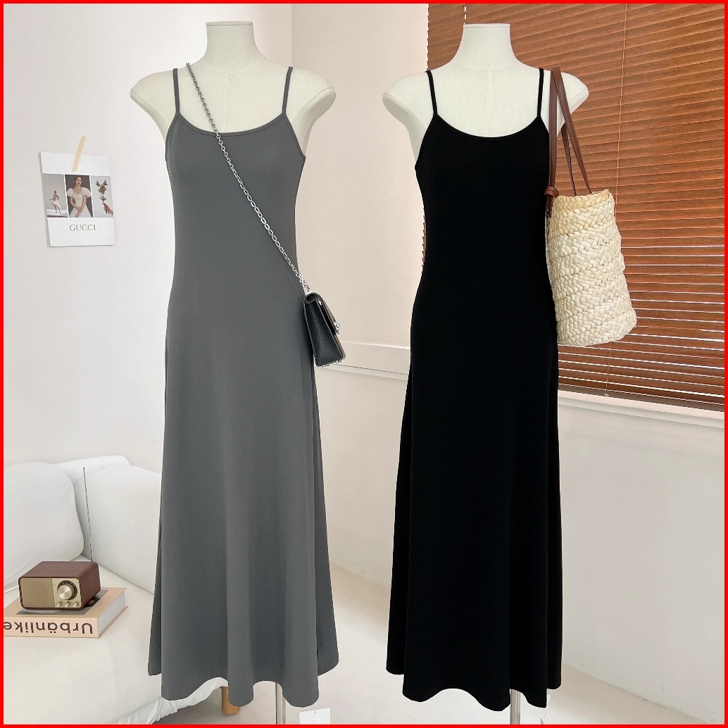 Kekinian.factory Ready Stok Dress Hitam V-neck Korean Stye Panjang Jumbo Long Dress Crinkle Wanita Kekinian Fashion Mela