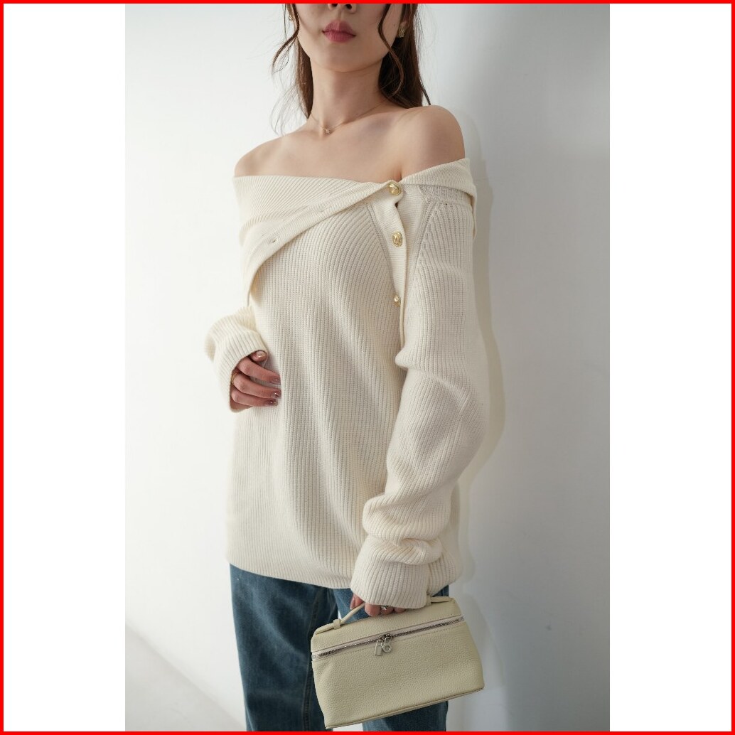 Kiyorawears - Hera Offshoulder Knit Top One Shoulder Solid Wanita Atasan Lengan Panjang Sabrina Knit Atasan Rajut Wanita