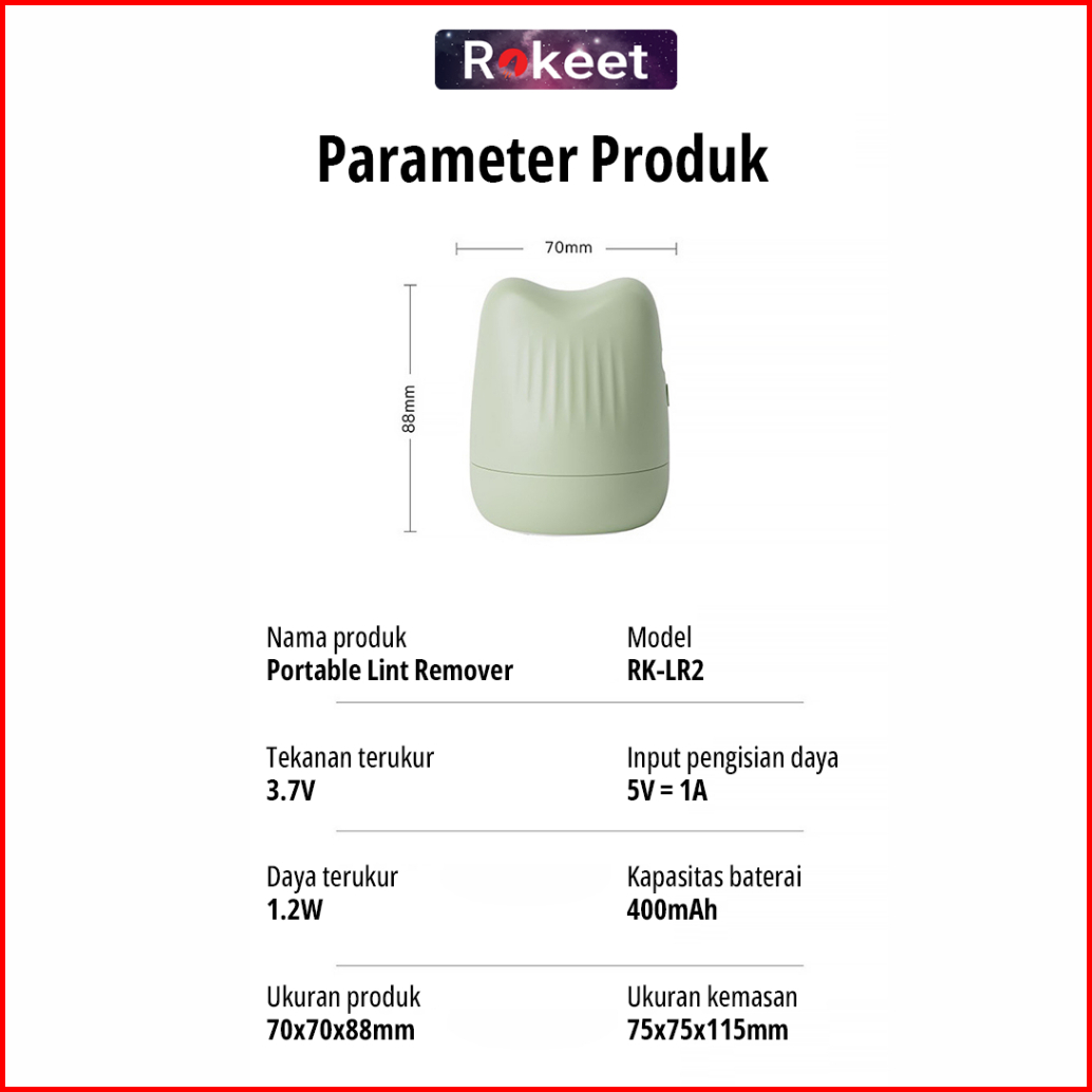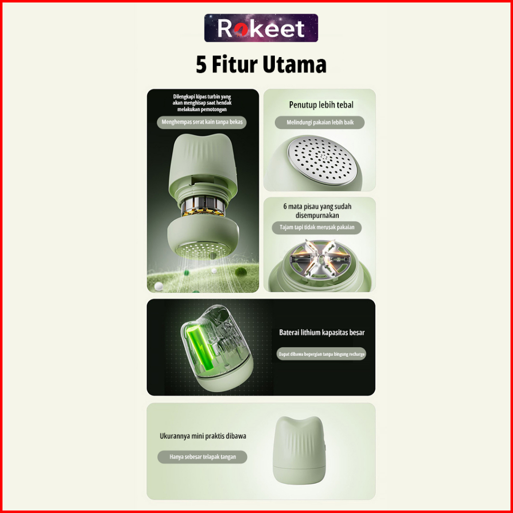 Rokeet Alat Penghilang Bulu Baju Pakaian Mini Portable Fuzz Tirimmer Lint Remover Electric Rechargeable