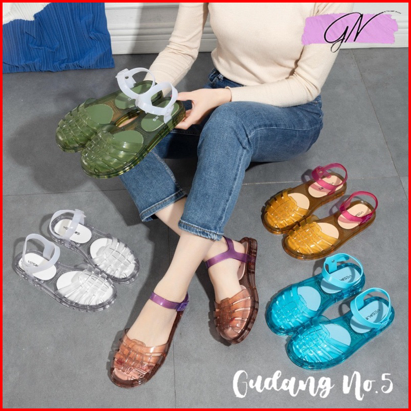 Gn-005 Sandal Jelly Gladiator Model Flat Sandal Wanita Import Premium Melisa Tali Pvc