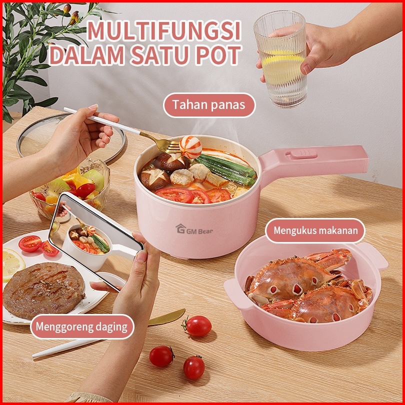 Gm Bear Panci Listrik Serbaguna 2l 2315 - Kompor Listrik Panci Penggorengan Listrik Panci Elektrik Free Steamer Pink