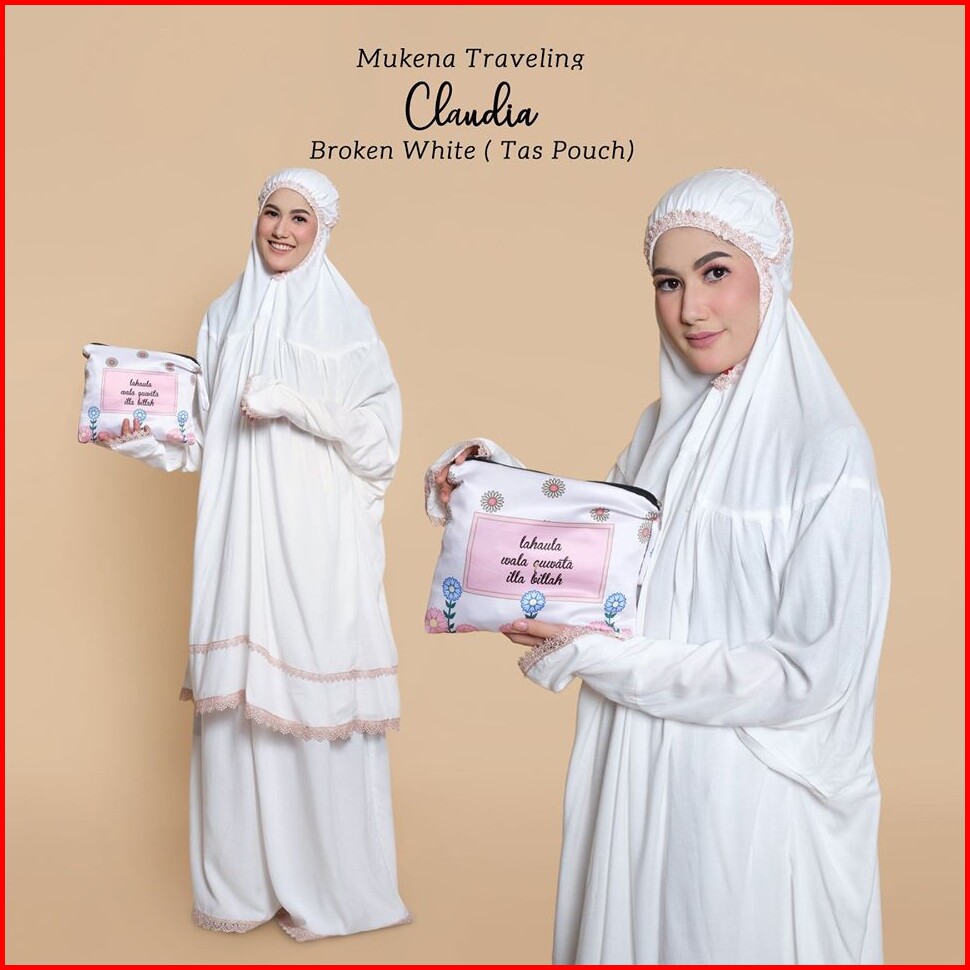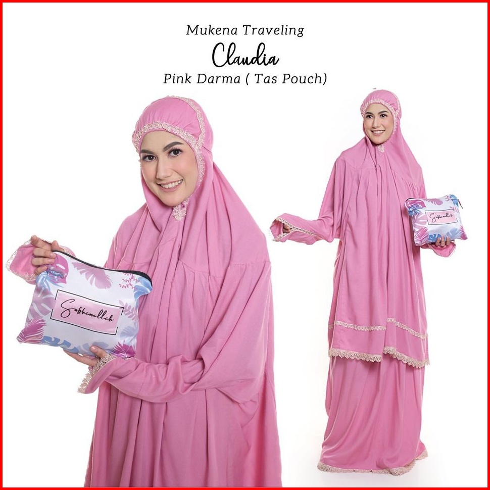 Pusat Mukena Indonesia - Mukena Dewasa Rayon Bali Travelling Berlengan Claudia Tas Pouch