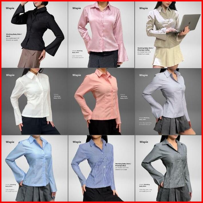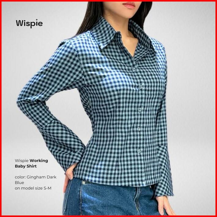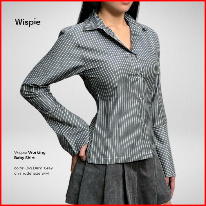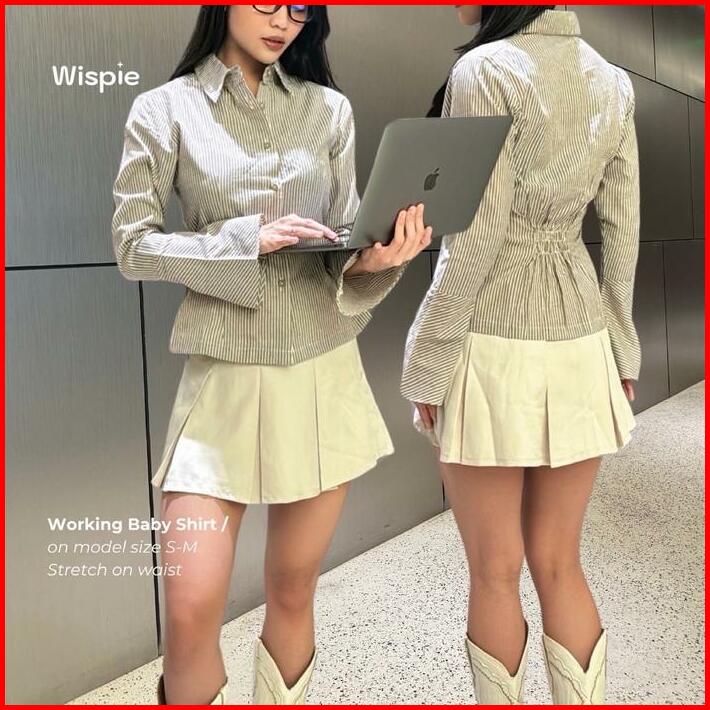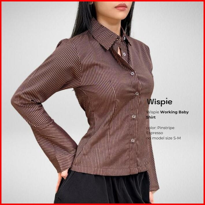 Wispie Working Baby Shirt Kemeja Kerja Wanita Motif Pinstripe Lengan Panjang Formal Fitted Slim Fit Lengan Cutbray Korea