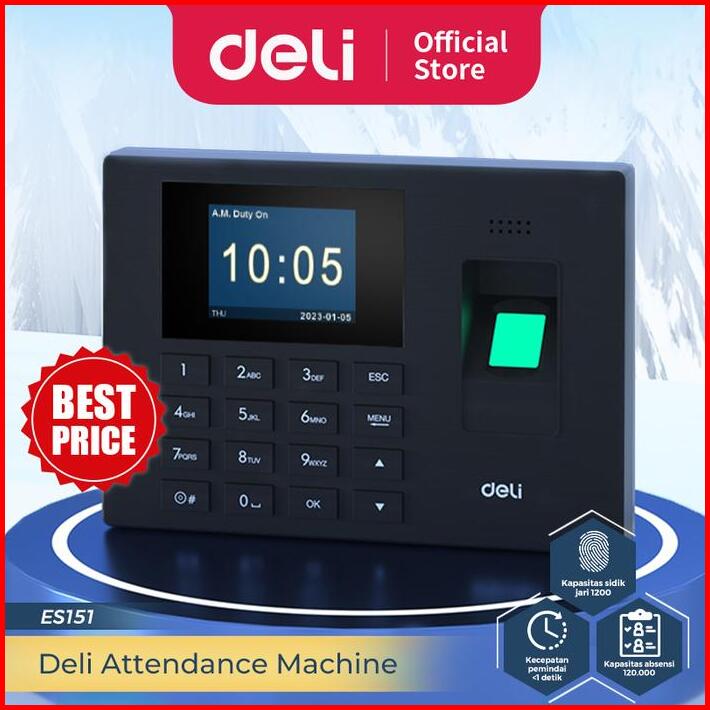 Deli Mesin Absensi Sidik Jari Kapasitas 1200 Bahasa Indonesia Es151