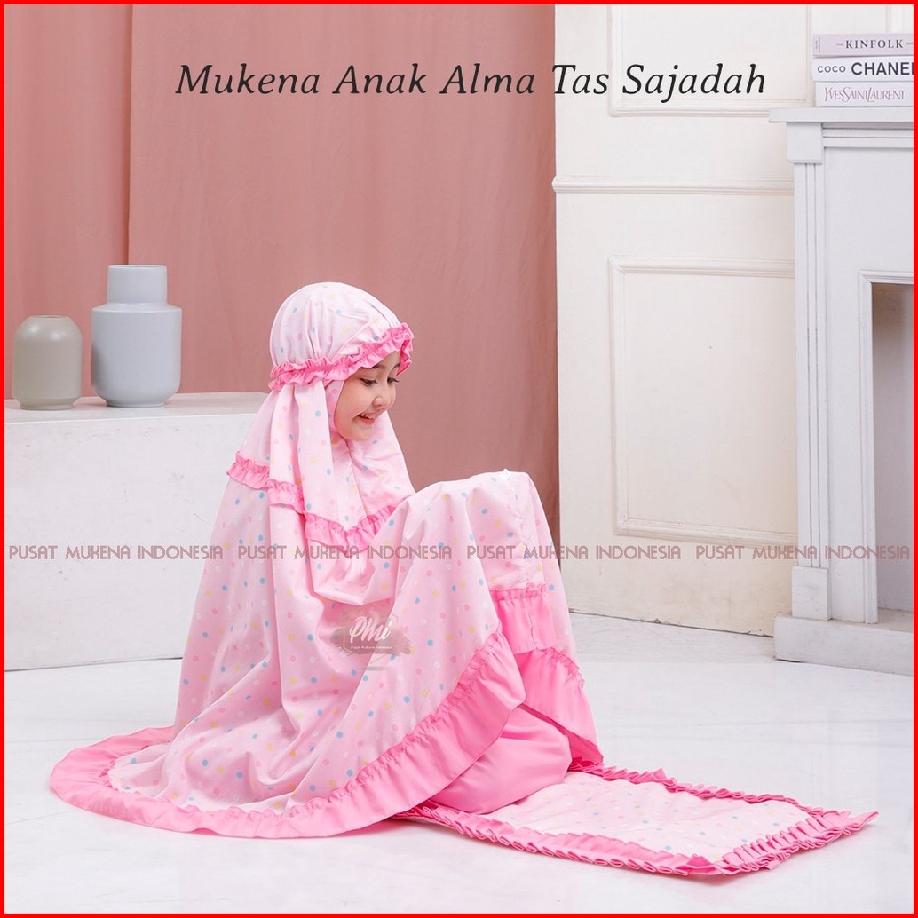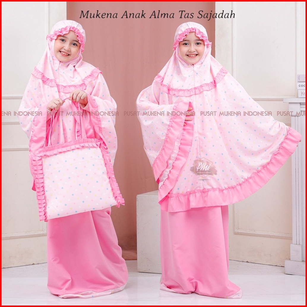 Pusat Mukena Indonesia - Mukena Anak Katun Polkadot Alma Tas Sajadah