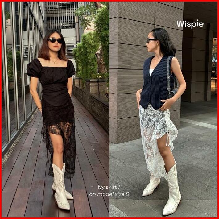 Wispie Ivy Skirt Rok Tanpa Dalaman Wanita Pesta Acara Brokat Lace