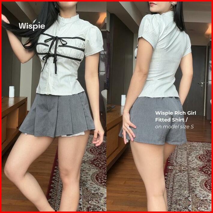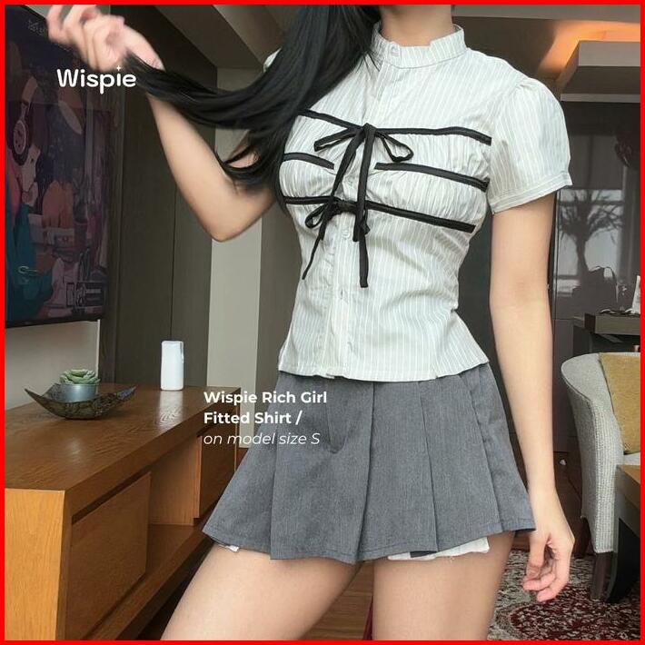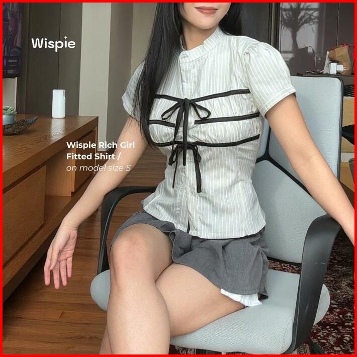 Wispie Rich Girl Fitted Shirt Kemeja Wanita Slim Fit Body Lengan Pendek Kerja Kuliah Kantor Cute