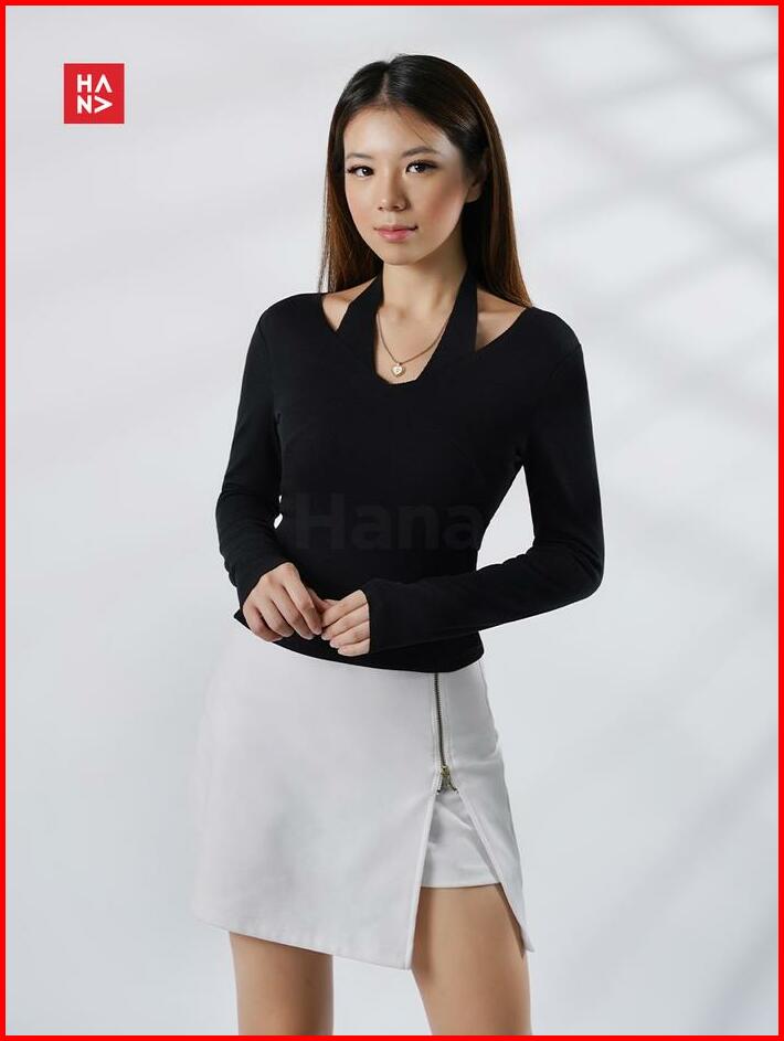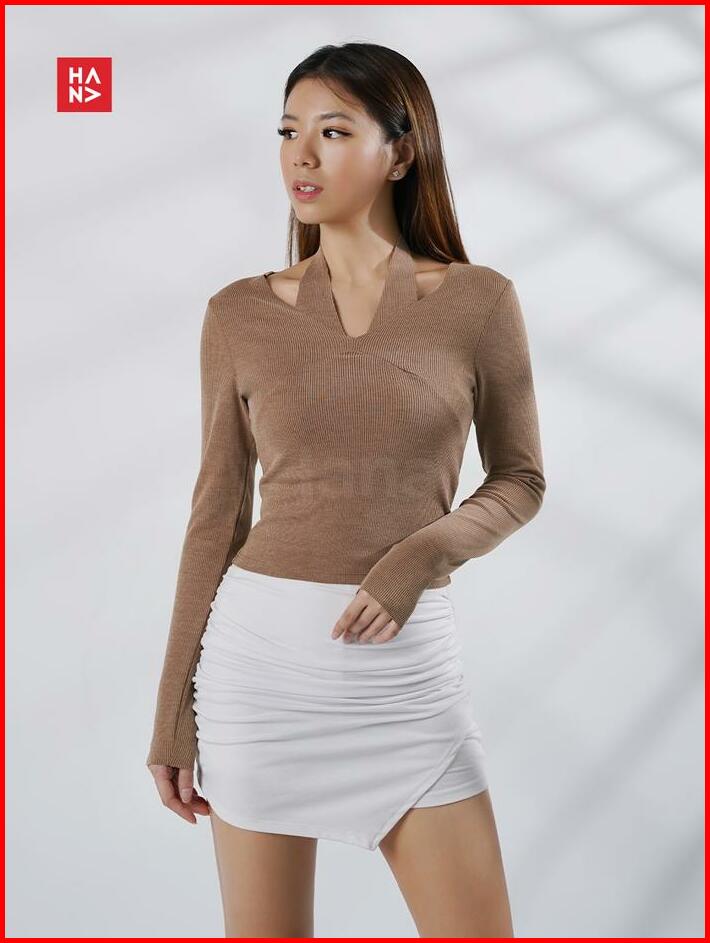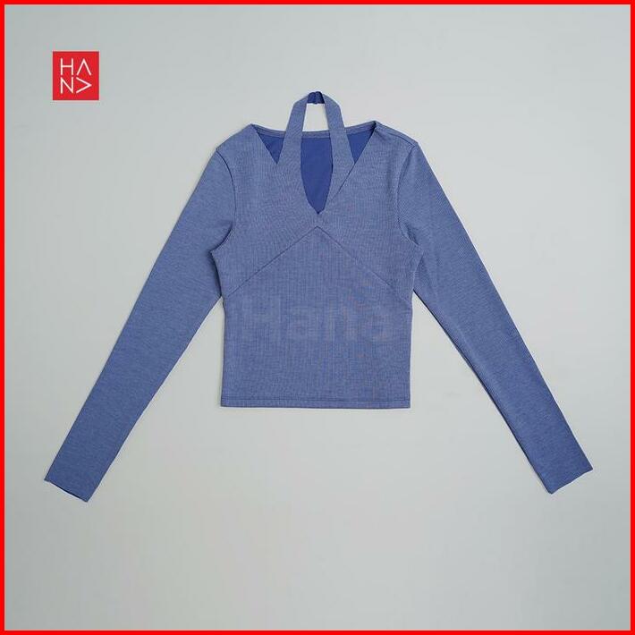 Valerie Rib Long Sleeve Halter V-neck Baju Lengan Panjang V-neck