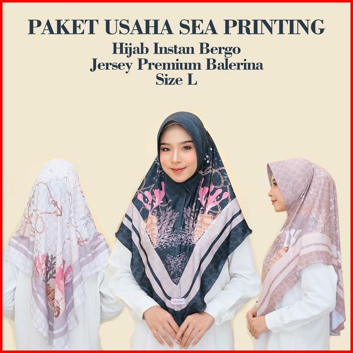 Paket Usaha 20 Pcs Vava Hijab Sea Bergo Daily Jersey Motif Printing Lembut Nyaman Panjang Kerudung Muslim