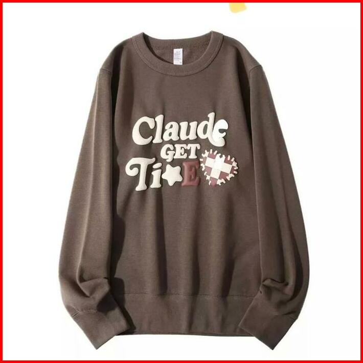 Sweater Wanita Claude Get Tie Crewneck Oversize Fleece Atasan Sweatshirt Basic