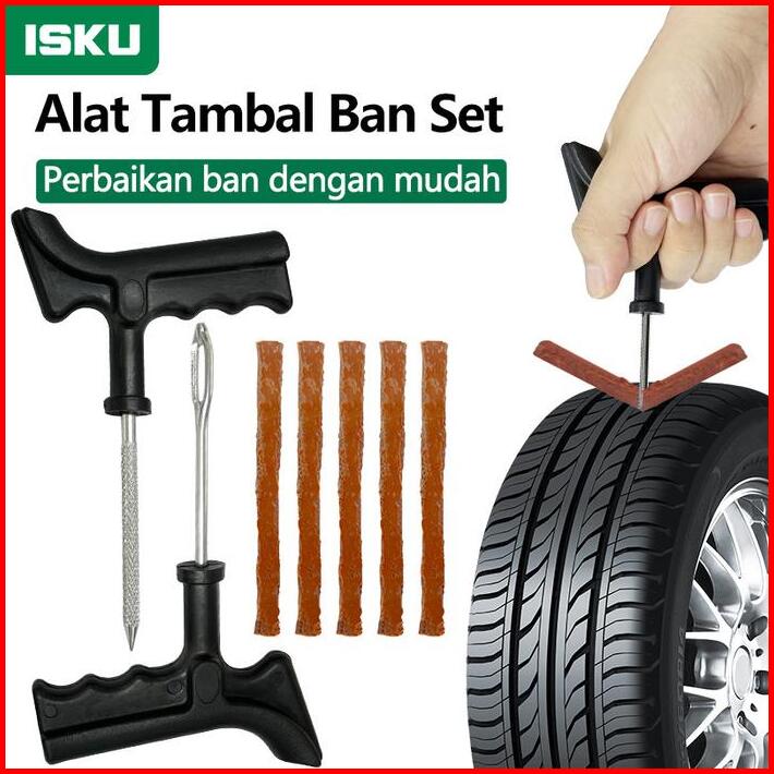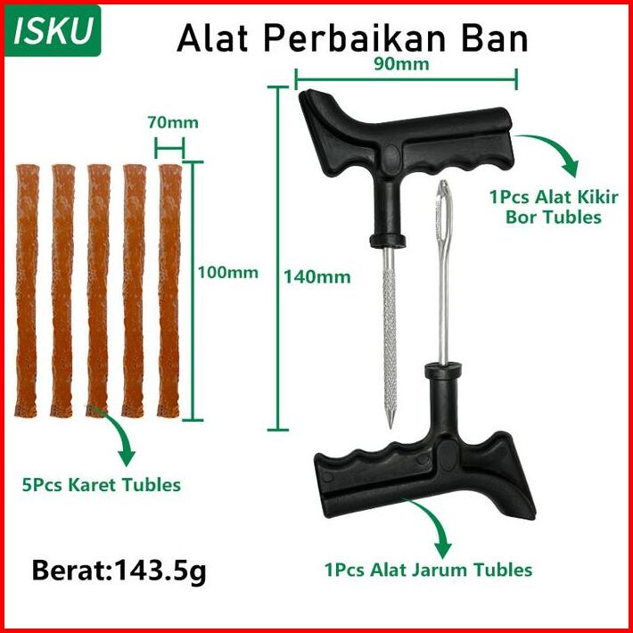 Isku Alat Tambal Ban Set 7 Pcs Tubeless Motor Mobil Sepeda Metal Tyre Kit Plastik Anti Bocor
