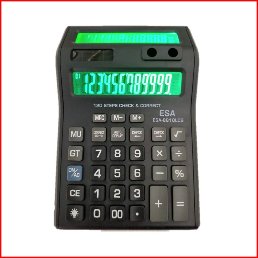 Kalkulator Led 2 Layar Double Screen Check Correct Esa 8810lcs Free Baterai