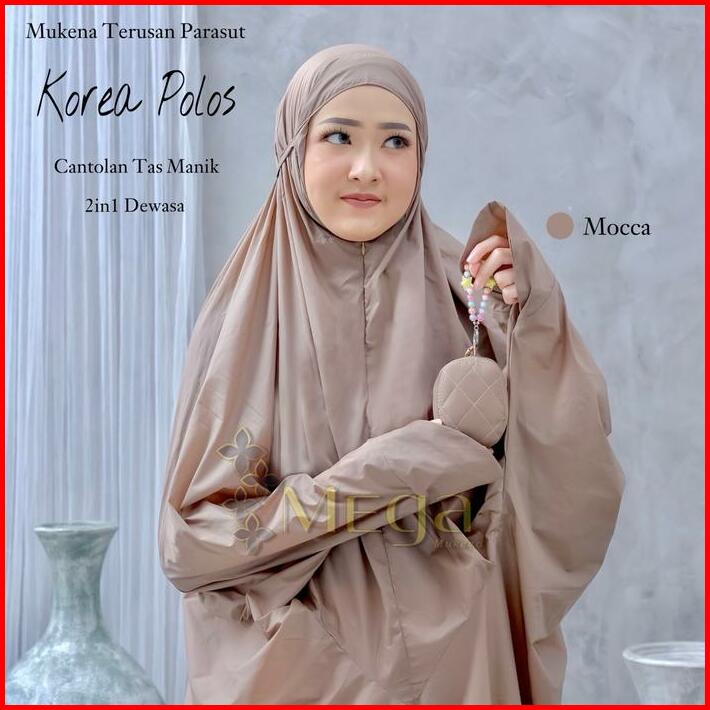 Mukena Terusan Travel Mini 2in1 Tas Ter-kecil Muri Kain Parasut Korea Premium Lembut Mukenah Dewasa Lajuran Muslim Free