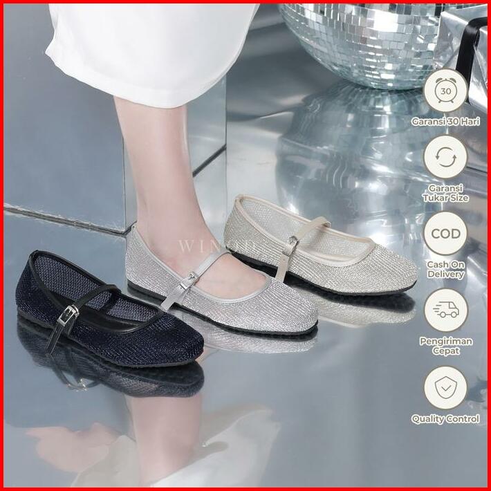 Winod Jeslyn Flatshoes Wanita Sepatu Balet Flat Slip On Model Jaring Casual Sepatu Model Jaring Daily