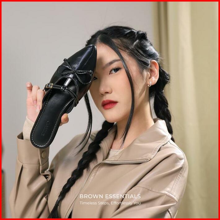 Winod Wilona Mules 2cm Sepatu Slip On Casual Brown Essentials Daily