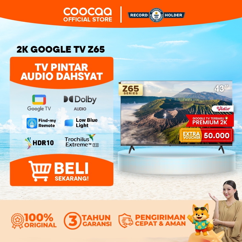 Google TV Coocaa Z65 43 Inch 2K HDR10 Flicker Free Low Blue Light WiFi USB LAN