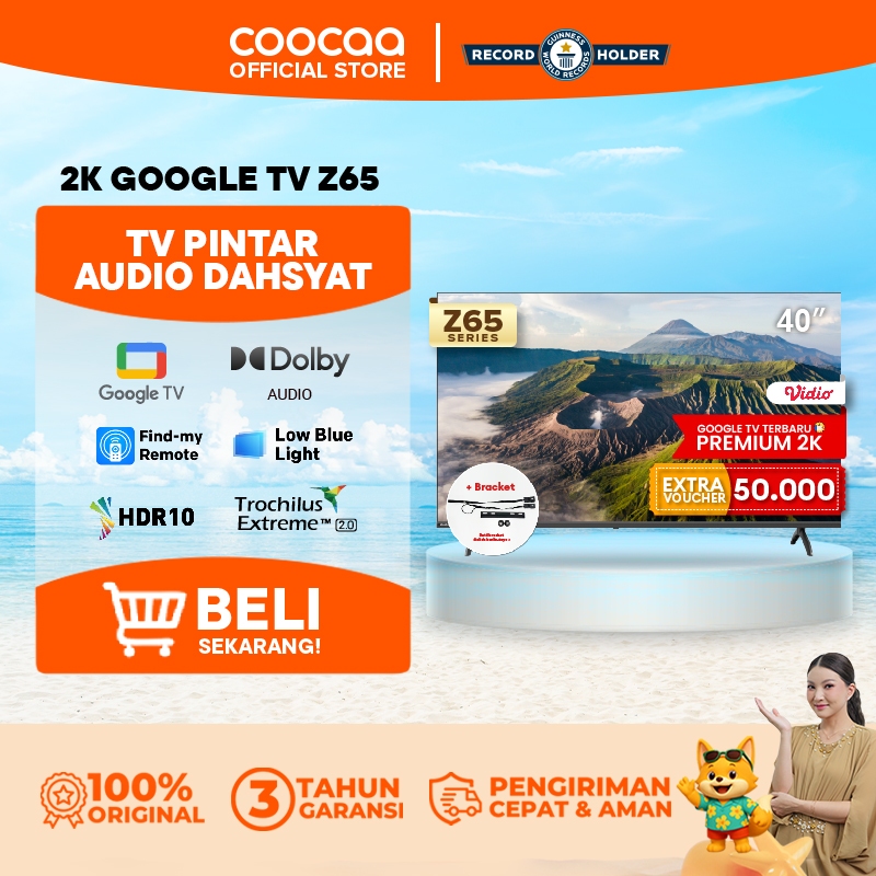 Google TV Coocaa Z65 40 Inch 2K HDR10 Low Blue Light Flicker Free Smart TV WiFi