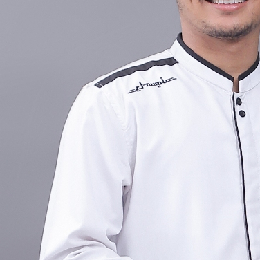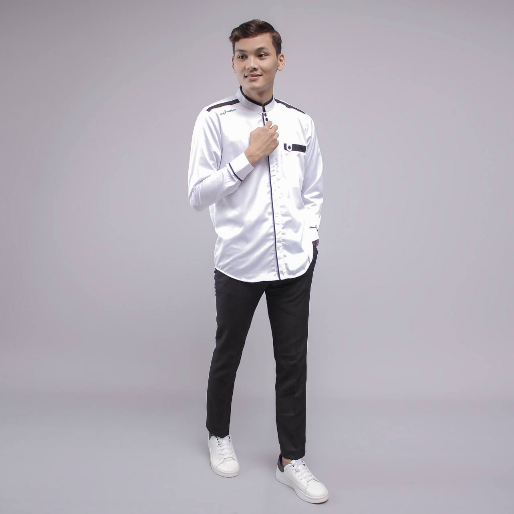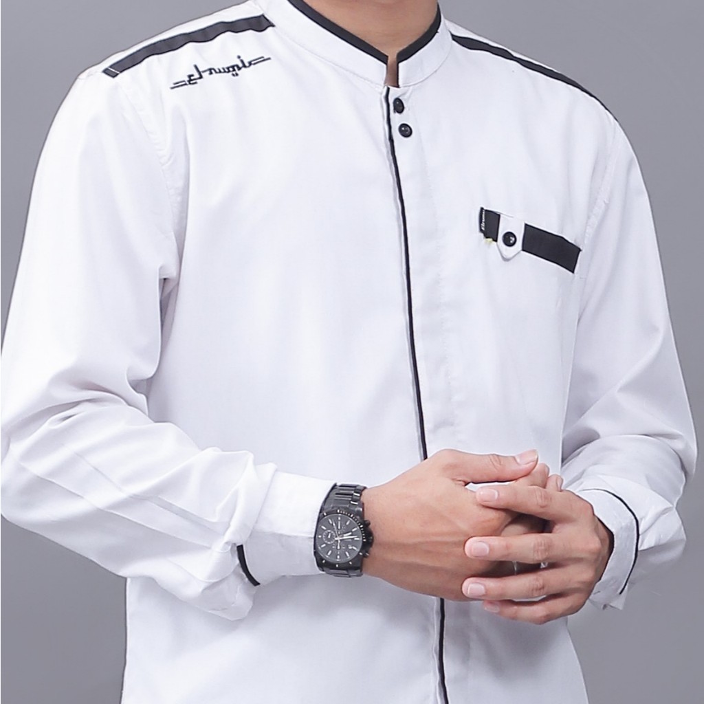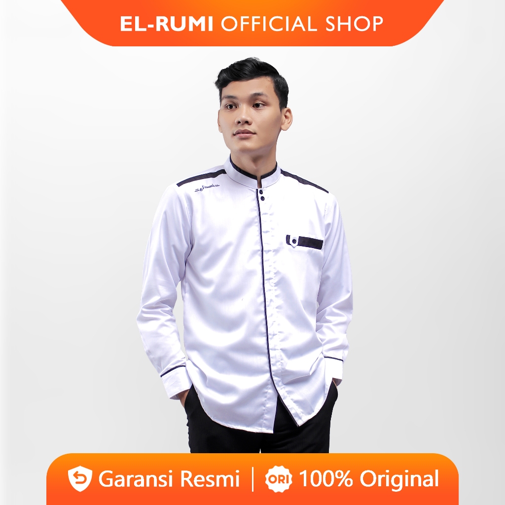 Baju Koko Pria Elrumi Lengan Panjang Motif Yisunsin Warna Putih