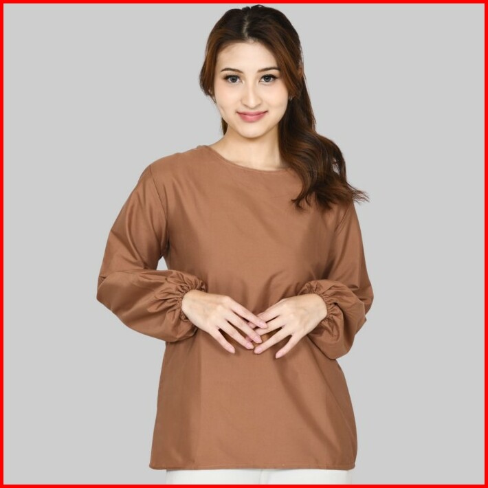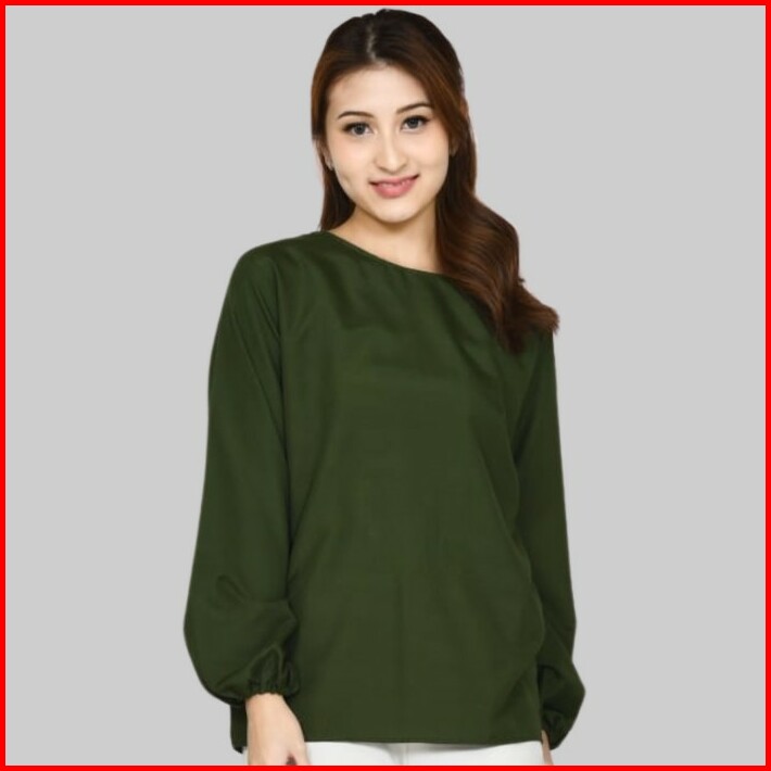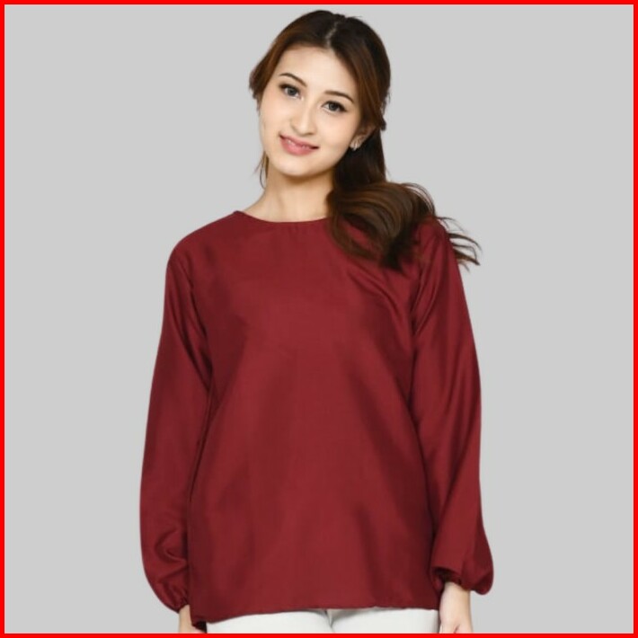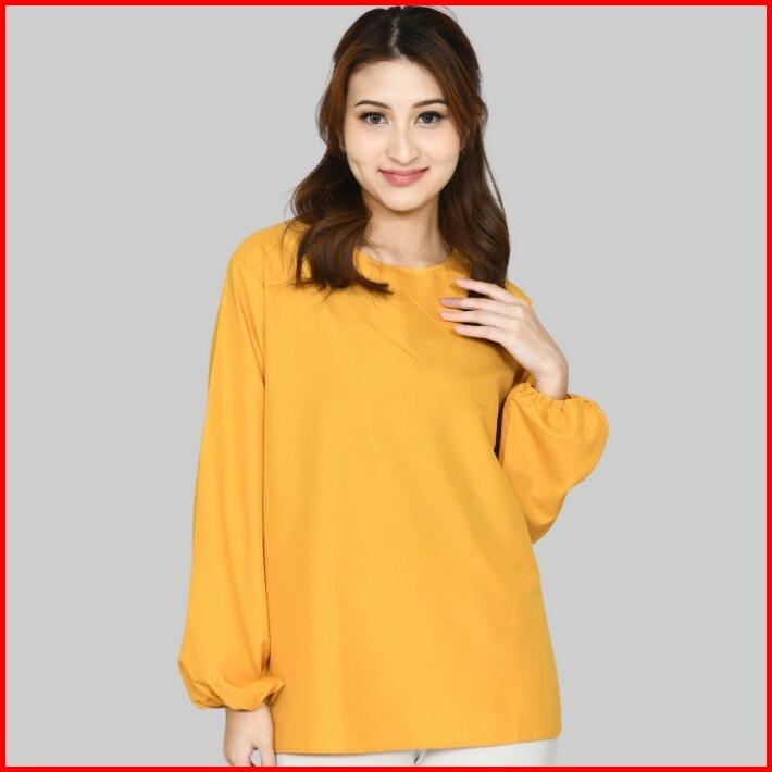 Monellina Balena Blouse Wanita Lengan Panjang Polos